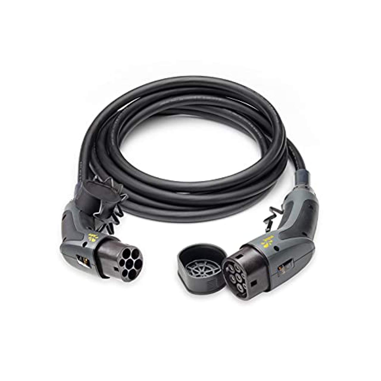 Das Juice Flow Ladekabel für Elektroautos EV verwendet Stecker des Typs 2, die für ihre Langlebigkeit und breite Akzeptanz in privaten und gewerblichen Ladeinfrastrukturen bekannt sind. Die Verwendung von Silberkontakten in diesen Steckern erhöht die Leitfähigkeit und Langlebigkeit und sorgt für eine zuverlässige Leistung über viele Jahre hinweg. Das macht das Juice Flow Kabel zu einer attraktiven Option für alle, die eine zuverlässige 22-kW-Ladelösung kaufen möchten.