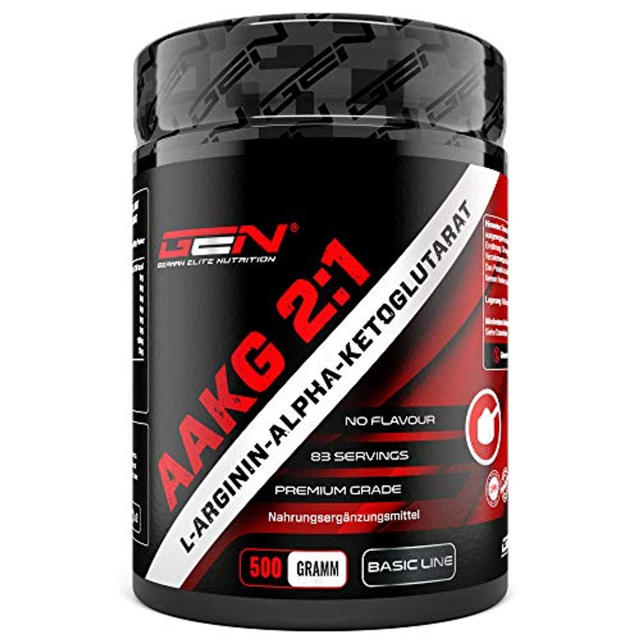 GEN GERMAN ELITE NUTRITION AakgDie Aminosäure AAKG 2:1 im Detail AAKG ist die Abkürzung für Arginin Alpha-Ketoglutarat. Die Basis hierbei stellt die Aminosäure L-Arginin, welche auch als semi-essentielle und proteinogene (proteinbildende) Aminosäure bezeichnet wird. Unser Körper ist zwar in der Lage selber Arginin zu bilden und über verschiedene Nahrungsquellen aufzunehmen, allerdings haben gerade Sportler und leistungsorientierte Menschen einen erheblichen Mehrbedarf, welcher nur schwer zu decken ist.Zudem kommt das es sich bei unserem Produkt um 100% reines AAKG handelt welches Sie so nicht in freier Form z.B. durch die Nahrung finden werden. Highlights auf einen Blick: Jede Dose enthält 500 g reines AKKG 2:1 Pulver mit ca. 83 Portionen zu jeweils 6 g. AAKG ist besonders beliebt bei Sportlern & wird häufig in Boostern oder bei Pump Supplements eingesetzt. Arginin Alpha Ketoglutarat (oft auch kurz AAKG genannt) ist ein beliebtes Nahrungsergänzungsmittel mit L-Arginin. AAKG ist eine leistungsstarke 2:1 Version, bestehend aus zwei Arginin-Molekülen, welche an ein Alpha-Ketoglutarat-Molekül gebunden sind.Dadurch kann diese Variante bis zu 50% besser vom Körper absorbiert werden als reguläres Arginin. AAKG mit einem optimale 2:1 Verhältnis ist besonders gut bioverfügbar . Unser AAKG Pulver hat eine perfekte Löslichkeit. Der enthalte Scoops ermöglicht eine einfache & genaue Dosierung. Gemäß Verzehrempfehlung wird vor dem Workout eine Portion mit 6 g AAKG-Pulver (2 Scoops) empfohlen. Unser AKKG Pulver ist 100% vegan, frei von Magnesiumstearat, gelatinefrei, frei von Aromen, frei von Farbstoffen, frei von Stabilisatoren, laktosefrei, glutenfrei, frei von Konservierungsstoffen, frei von gentechnikveränderten Zutaten (GMO frei). GEN AAKG 2:1 Pulver im Detail AKG steht für α-Ketoglutarsäure und ist ein sogenanntes Stickstoffzwischenprodukt. Durch die Zusammnenführung von Arginin und α-Ketoglutarsäure liegt das Arginin nun in einer besonders fortschrittlichen und leistungsfähigen Form, dem A-AKG vor. Dieses kann vom Körper bis zu 50 % besser aufgenommen werden als das ursprünglich reine Arginin. Wir von GEN Nutrition verwenden zudem nur AAKG in einem optimalen Verhältnis von 2:1, was beutet 70% Arginin – 30% α-Ketoglutarsäure um die beste Bioverfügbarkeit zu gewährleisten. Produktqualität & Verzehrempfehlung German Elite Nutrition AAKG 2:1 Pulver ist reines Pulver ohne Kompromisse. Unser AKKG Pulver ist 100% vegan, frei von Magnesiumstearat, gelatinefrei, frei von Aromen, frei von Farbstoffen, frei von Stabilisatoren, laktosefrei, glutenfrei, frei von Konservierungsstoffen, frei von gentechnikveränderten Zutaten (GMO frei).Unser AAKG Pulver hat eine perfekte Löslichkeit. Der enthaltene Scoop ermöglicht eine einfache & genaue Dosierung. Gemäß Verzehrempfehlung wird vor dem Workout eine Portion mit 6 g AAKG-Pulver (2 Scoops) empfohlen, was bei 500 g ca. 83 Portionen zu jeweils 6 g entspricht.