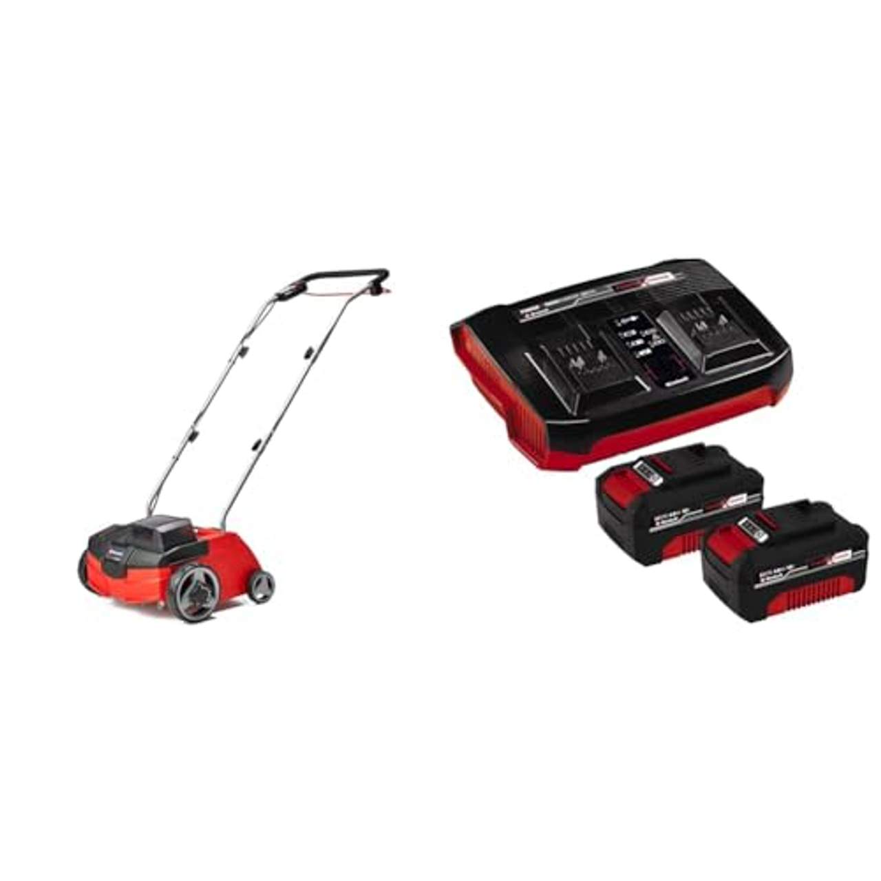 - Schnurlose Bequemlichkeit: Der Einhell Akku-Vertikutierer GC-SC 36/31 Li wird von zwei 18-V-Akkus angetrieben, so dass Sie das Gerät in jeder Ecke Ihres Gartens einsetzen können, ohne sich um Stromkabel kümmern zu müssen. Im Lieferumfang sind außerdem zwei 4,0Ah-Akkus und ein Twincharger enthalten, sodass Sie sich nie Sorgen machen müssen, dass Ihnen der Strom ausgeht.