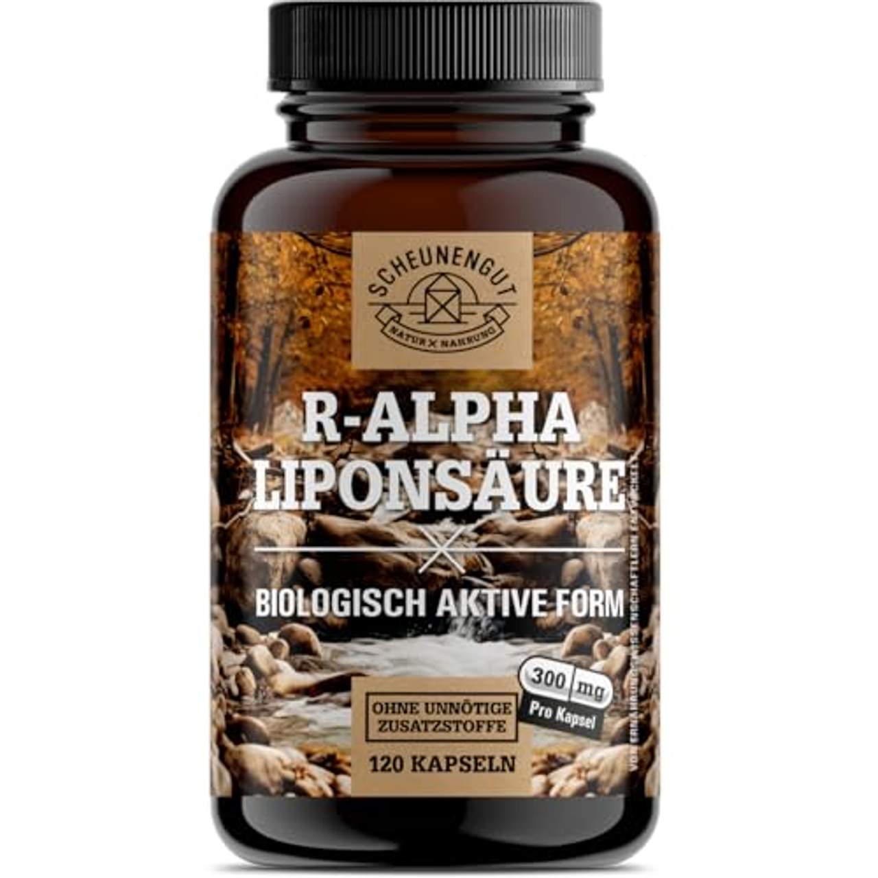Alpha Liponsäure R-ALA I Ideal: 302mg hochdosiertHOCHWIRKSAME KOMBINATION - Wir verwenden ausschließlich die körpereigene, hoch bioverfügbare Form der Alpha-Liponsäure (R-Form). Das Coenzym wird so optimal von den Zellen angenommen. VORTEILE DER R-FORM - Wie oben bereits erwähnt ist die R-Alpha Liponsäure die körpereigene und natürlich vorkommende Form. Sie hat einen hohen Wirkungsgrad, die synthetische S/RS-Form dagegen einen sehr geringen. WELCHE AUFGABEN HAT R-ALA - Zum einen ist sie Coenzym verschiedener Enzymkomplexe und somit Bestandteil jeder Körperzelle. Zum anderen ist sie eines der wichtigsten Antioxidantien und bindet besonders erfolgreich Schwermetalle. WIE IMMER FREI VON ZUSäTZEN - Wie bei all unseren Produkten, verzichten wir auch bei der alpha lipo acid auf unerwünschte Zusätze. Die Kapseln sind vegan, frei von Füll- oder Konservierungsstoffen und 100% natürlichen Ursprungs. HERSTELLUNG IN DEUTSCHLAND - Wir von Scheunengut sind der Überzeugung, dass eine regionale Produktion trotz höherer Herstellungskosten einen deutlichen Mehrwert für Sie als Endkunden mitbringt. Wir produzieren auch 2023 vollständig in Deutschland.