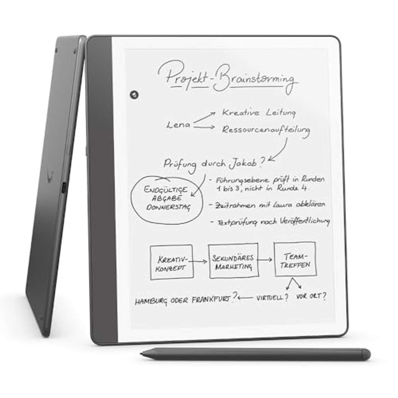- Doppelte Funktionalität: Der Amazon Kindle Scribe bietet den bemerkenswerten Vorteil der Doppelfunktionalität, indem er die Funktionen eines herkömmlichen E-Readers nahtlos mit denen eines digitalen Notizbuchs kombiniert. Das bedeutet, dass die Nutzer eine umfangreiche Bibliothek von Büchern nutzen können und gleichzeitig die Möglichkeit haben, Notizen zu machen, Aufgabenlisten zu erstellen oder Tagebucheinträge zu verfassen - alles mit einem Gerät. Durch diese Integration ist es nicht mehr nötig, mehrere Geräte mit sich zu führen, was für Studierende, Berufstätige und begeisterte Leser gleichermaßen praktisch ist. Die Möglichkeit, mühelos zwischen Lesen und Schreiben zu wechseln, steigert die Produktivität und fördert die Kreativität, da die Nutzer Ideen festhalten können, sobald sie entstehen, ohne ihren Platz im Buch zu verlieren.