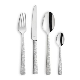 Das Amefa Sierra zeichnet sich durch sein unverwechselbares Hammerschlag-Design aus. Dieses subtile, aber attraktive Detail auf der hochglanzpolierten Oberfläche verleiht deinem gedeckten Tisch einen Hauch von Klasse und Raffinesse. Die gehämmerte Oberfläche bildet einen einzigartigen visuellen Kontrast zu den glatten Teilen der Teile und hebt dieses Set von herkömmlichen Besteckkollektionen ab.