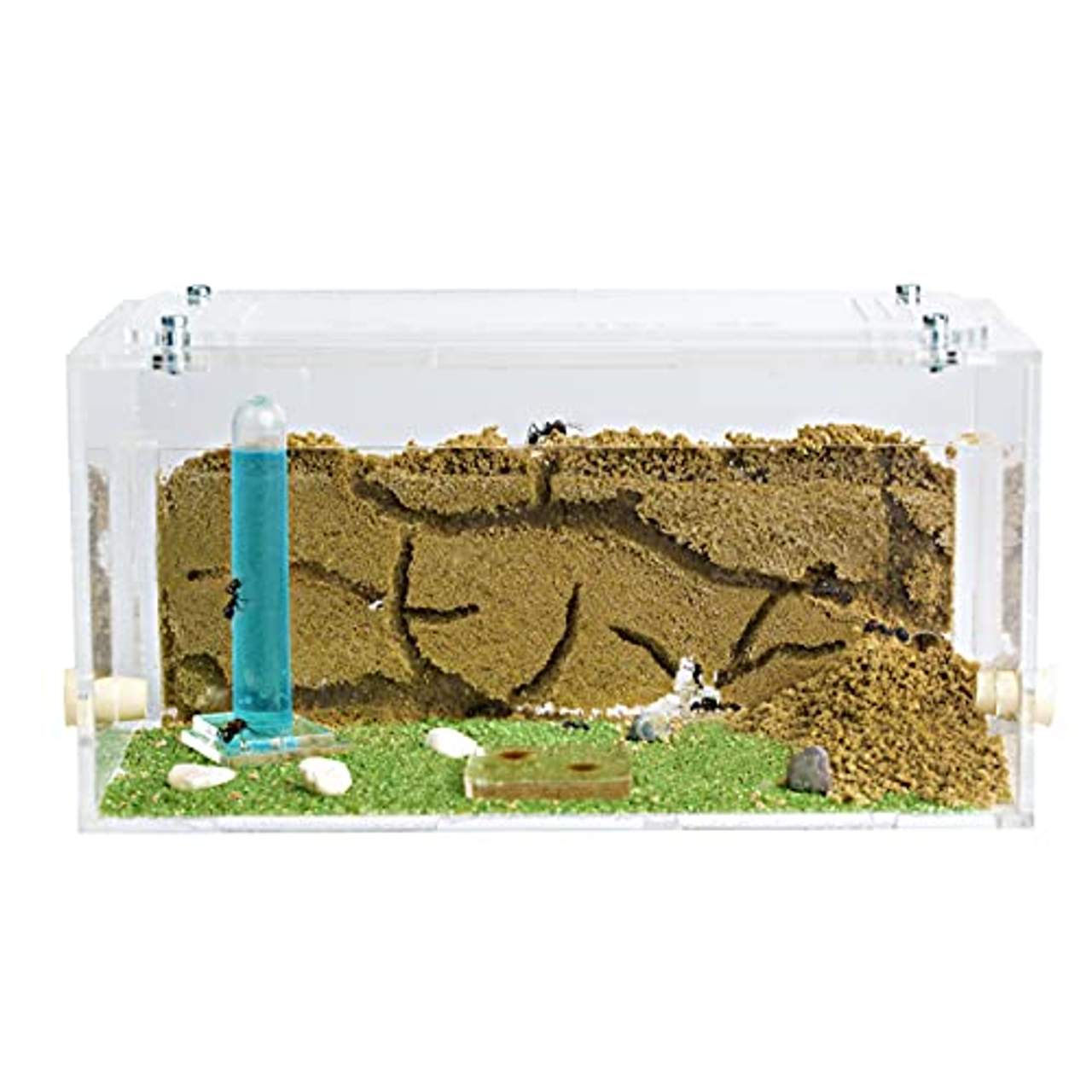 - Dekorieren und Anpassen: Sie können Ihre Ameisenfarm individuell gestalten, indem Sie sie mit Sand, kleinen Pflanzen oder Steinen dekorieren, so dass sie jedes Mal, wenn Sie sie aufstellen, einzigartig aussieht. Dies bietet auch eine zusätzliche Bereicherung für Ihre Ameisen, die ihr neues Zuhause erkunden.