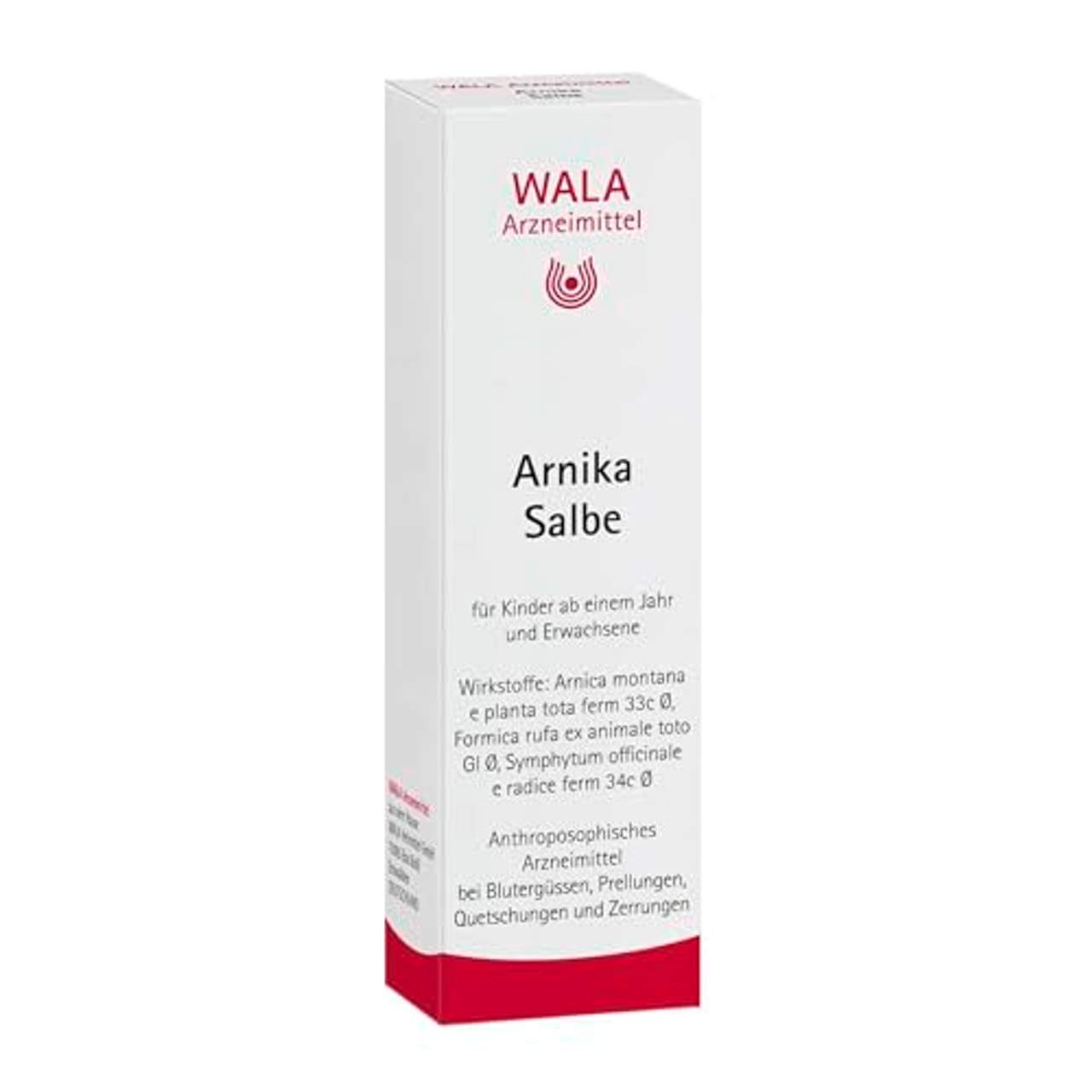 Wala Arnika Salbe bei Blutergüssen ist eine Salbe der WALA Heilmittel GmbH, Deutschland. Sie enthält homöopathisch potenzierte Wirkstoffe und wird nach der anthroposophischen Menschen- und Naturerkenntnis angewendet. Der Hauptinhaltsstoff ist Arnica montana, eine Heilpflanze, die auf den Bergwiesen wächst und abschwellende, schmerzlindernde und entzündungshemmende Eigenschaften hat. Sie hilft bei Zerrungen, Prellungen, Hämatomen und Gelenkbeschwerden, fördert die Geweberegeneration und lindert Schmerzen bei stumpfen Verletzungen oder Sportverletzungen. Weitere Vorteile sind, dass es natürlich und frei von künstlichen Duft-, Farb- oder Konservierungsstoffen ist. Es kann für Erwachsene und Kinder über 1 Jahr nach Rücksprache mit einem Arzt verwendet werden.