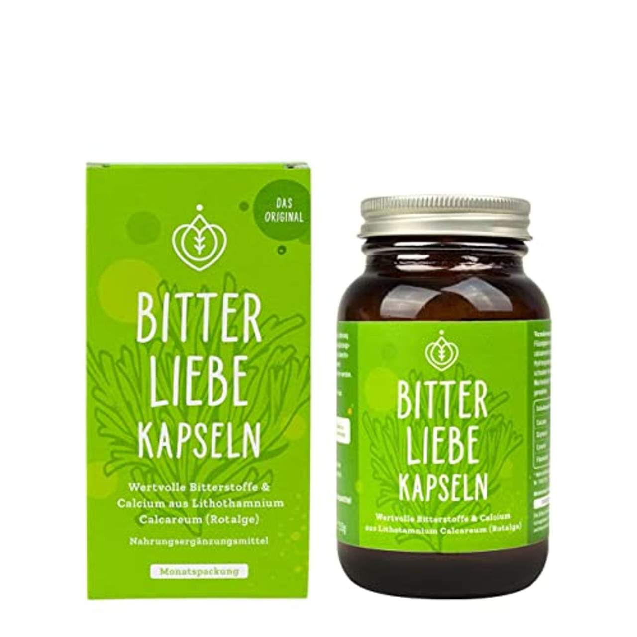 - Bitteres Gefühl: Die in den Kapseln enthaltenen natürlichen Bitterstoffe und das Kalzium aus den Rotalgen tragen zu einer normalen Verdauungsfunktion bei. Die BitterLiebe Bitterkapseln sind so konzipiert, dass sie sich erst im Magen-Darm-Trakt auflösen, wo sich viele Bitterrezeptoren befinden, und somit ein verstärktes Erlebnis beim Verzehr bieten.
