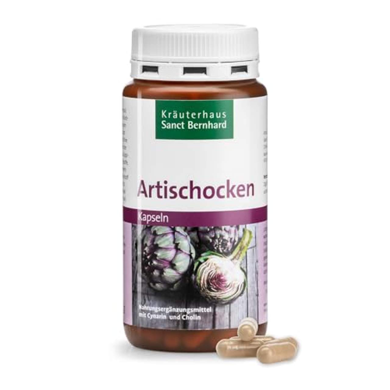 Sanct Bernhard Artischocken-Kapseln Inhalt 150 Kapseln sind Nahrungsergänzungsmittel, die 350 mg Artischockensaftkonzentrat und 50 mg Cholin pro Kapsel enthalten. Diese Kapseln wurden entwickelt, um einen normalen Fettstoffwechsel zu unterstützen und zur Aufrechterhaltung einer normalen Leberfunktion beizutragen.