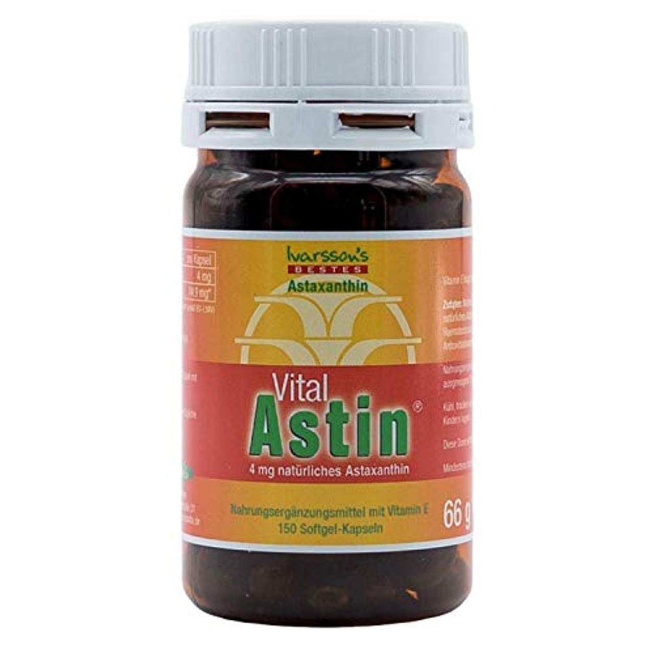 - Hochwertiges natürliches Astaxanthin: VitalAstin Astaxanthin 150 Kapseln I Das Original bietet dem Anwender ein hochwertiges natürliches Astaxanthin aus Algen, das ein besonders starkes Carotinoid ist. Es wird durch schonende CO2-Extraktion gewonnen und ist durch den Zusatz von Olivenöl und Vitamin E lange haltbar.