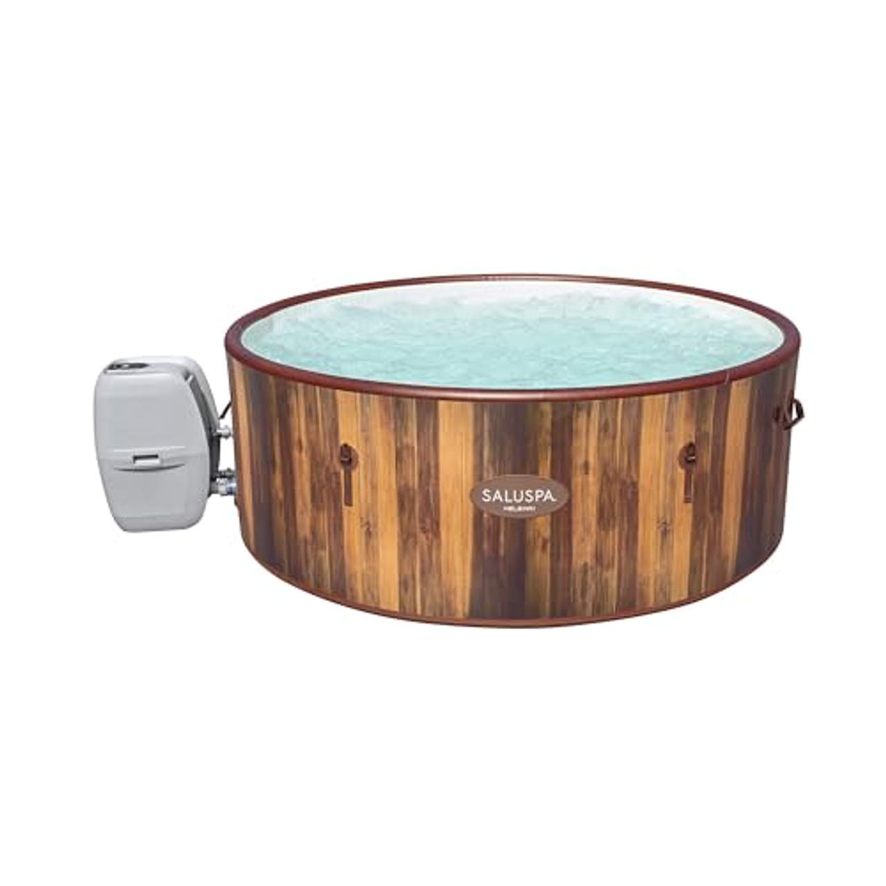 - Tragbar, stilvoll und kompakt: Mit seinen Hebegriffen lässt sich dieser Whirlpool leicht bewegen und gleichzeitig optimal für Lagerung und Transport entleeren. Sein holzverkleidetes Design verleiht Terrassen und Außendekorationen einen schönen Touch.
