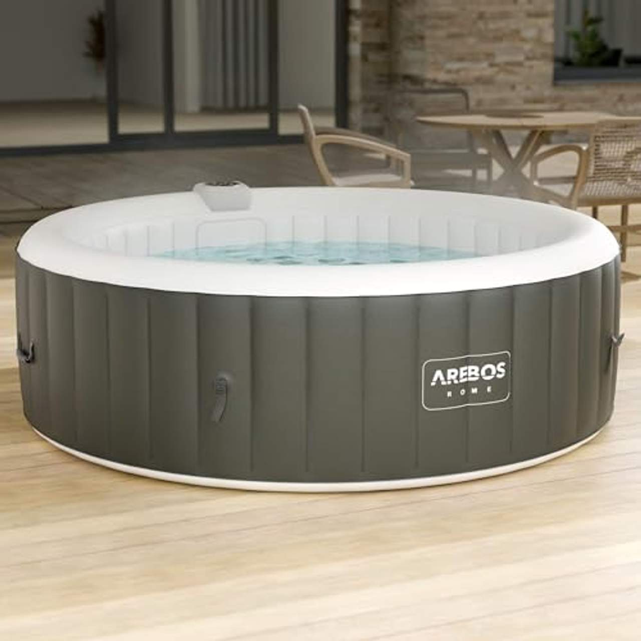 - Platz für 6 Personen: Der aufblasbare Hot Tub von Arebos ist groß genug, um bis zu 6 Personen bequem zu beherbergen und eignet sich daher hervorragend für Familientreffen oder gesellschaftliche Veranstaltungen.