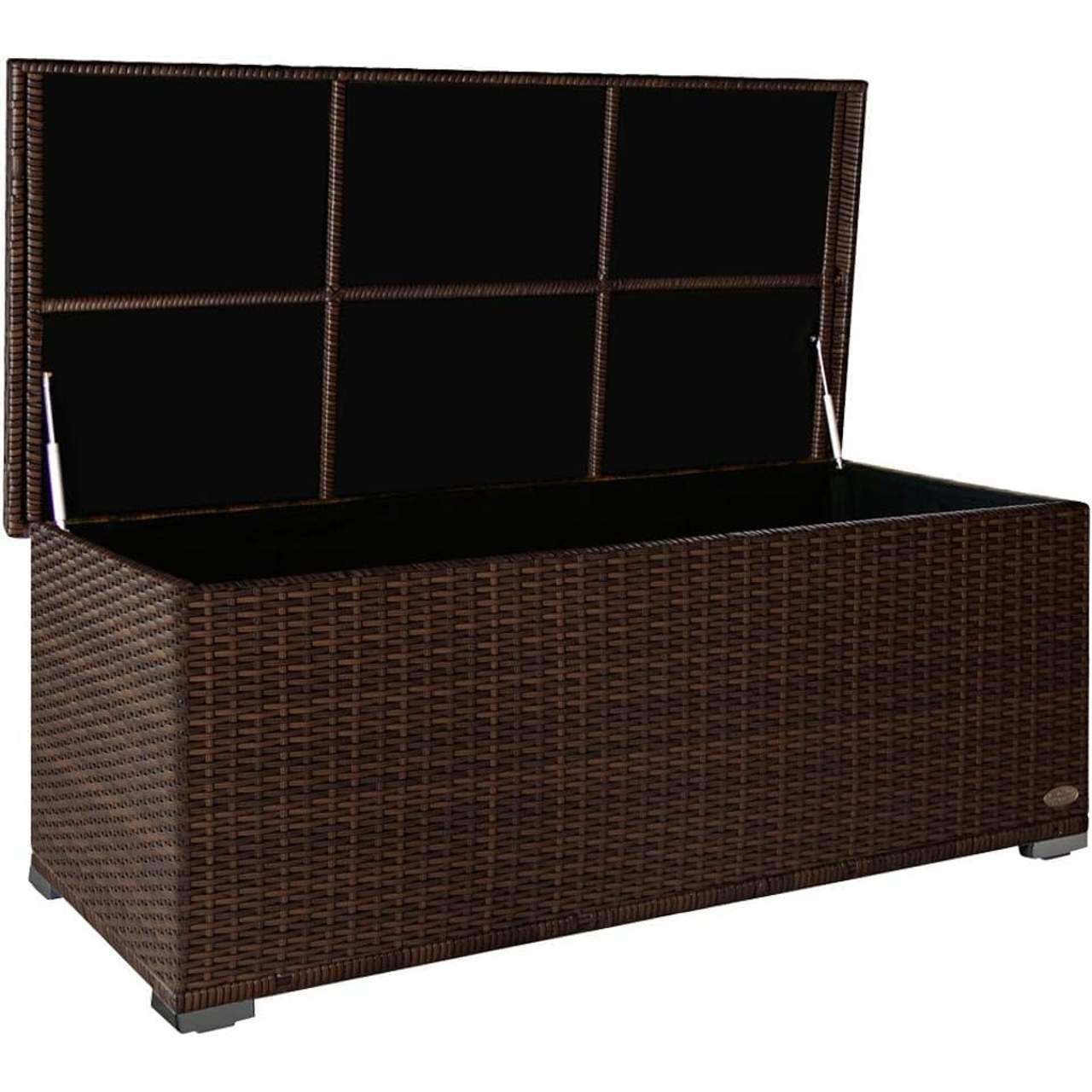 Fragen und Antworten zu Premium 'Sienna' 650l Polyrattan Garten Kissenbox wetterfest