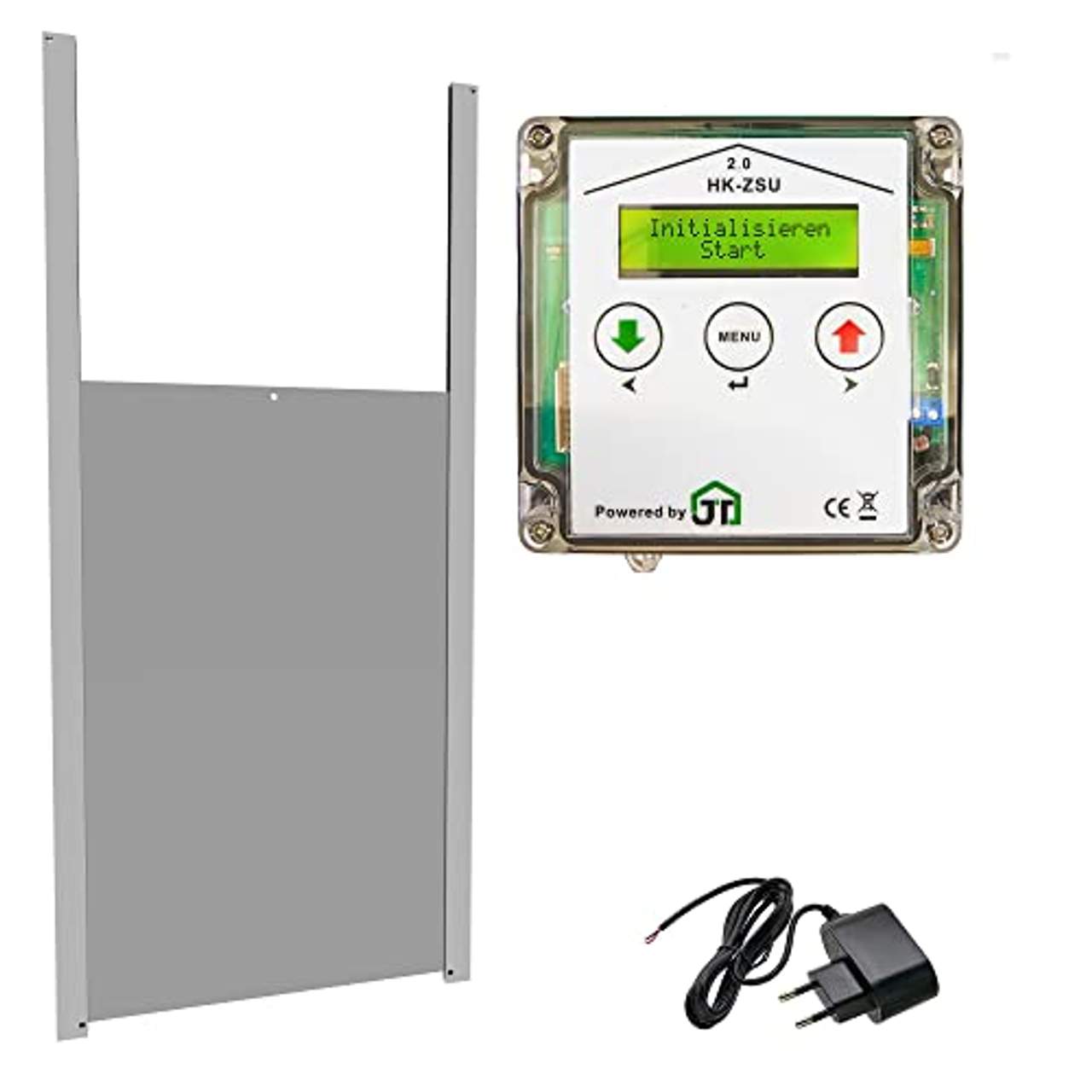Die „JOSTechnik automatische Hühnerklappe HK2“ wird mit 230 V betrieben und zeichnet sich durch ihre Robustheit und Zuverlässigkeit aus. Dies gewährleistet eine unterbrechungsfreie Funktion unabhängig von den äußeren Bedingungen und macht sie zu einer zuverlässigen Option für jede Hühnerstallanlage. Das mitgelieferte 12-V-DC-Steckernetzteil ist ebenfalls ein Zeichen für Vielseitigkeit und bietet bei Bedarf alternative Stromversorgungsmöglichkeiten. Das macht das Produkt von JOSTechnik zu einer guten Wahl für alle, die eine wartungsarme und zuverlässige Lösung suchen.