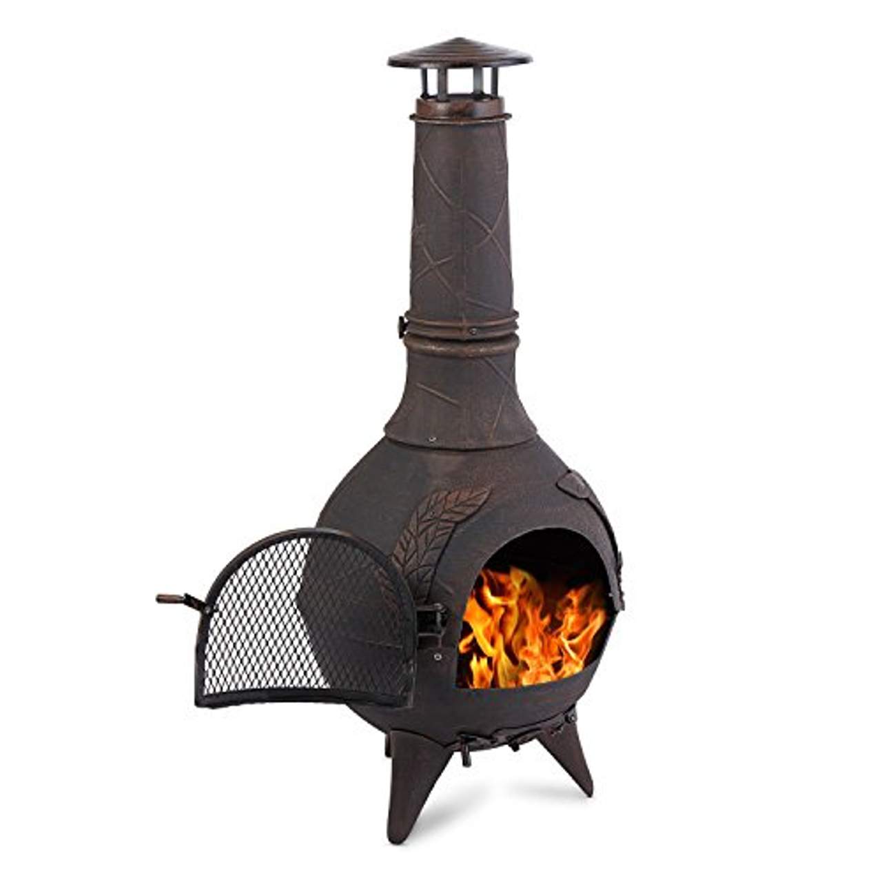 - Praktisches Design: Eine Zugluftklappe an der Unterseite lässt das Feuer schnell auflodern, während eine Gittertür Funkenflug verhindert. Der hohe Schornstein sorgt dafür, dass der Rauch schnell aufsteigt und gut abfließt.
