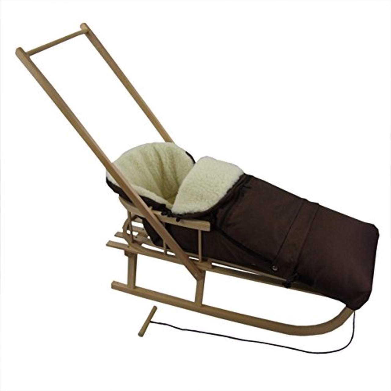 Bei diesem Produkt handelt es sich um einen Babyschlitten mit Schiebestange von der Marke „Rawstyle“. Es umfasst einen Holzschlitten aus Buchenholz, eine Rückenlehne, ein Zugseil und einen Schiebebügel sowie einen Lammfell-Winterfußsack, der sowohl für den Schlitten als auch für den Kinderwagen verwendet werden kann. Das Produkt ist von höchster Qualität und wird im eigenen Haus hergestellt.