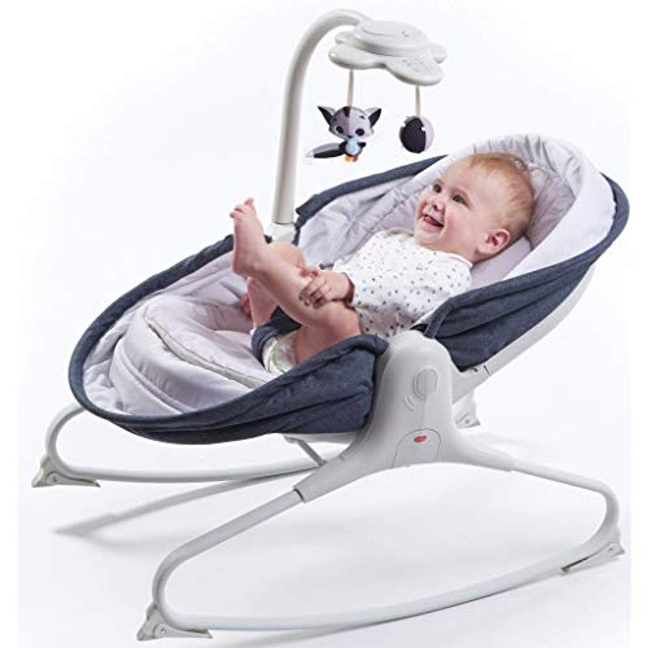 Das elektronische Spielzeug der Tiny Love Rocker Babywippe bietet eine Reihe von ansprechenden Funktionen wie Licht, Musik und Haken für zwei abnehmbare Spielzeuge. Es spielt neun verschiedene Melodien, die die Hörsinne deines Babys anregen und für Unterhaltung während des Spielens sorgen.