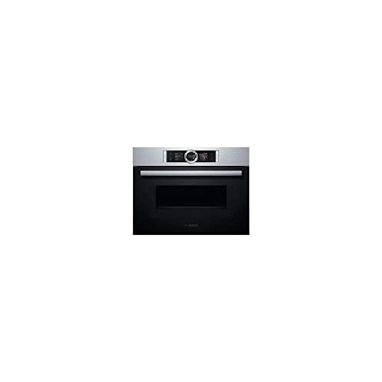 Bosch CMG636BS1 Serie 8 Einbau-KompaktbackofenTop-Feature: Top-Features: intuitiver Bedienring, Restwärmeanzeige, Mikrowellen-Funktion: Für schnelles Aufwärmen oder in Kombination mit Heißluft für schnelles Garen., Heißluft Eco, Kindersicherung, Assist-Funktion: Wirklich präzise Angaben zu Temperatur und Garzeit sucht man in manchen Kochbüchern und Familienrezepten vergeblich.Dank Bosch Assist gelingen sie trotzdem: Einfach das gewünschte Gericht auswählen und der Backofen stellt automatisch die ideale Heizart,Temperatur und Zubereitungszeit ein. Diese Einstellungen lassen sich natürlich auch einfach selbst vornehmen., Heißluft-Variante: 4D Heißluft: Mit 4D Heißluft können Sie Ihre Speisen ab sofort beliebig auf den Einschubhöhen 1 bis 4 platzieren u2013 das Ergebnis wird immer perfekt. Dafür sorgt unser neues Lüfterrad,welches seine Drehrichtung während des Betriebs wechselt und so die Hitze gleichmäßig auf alle Ebenen verteilt. Doch damit nicht genug: Mit der 4D Heißluft lässt sich auch parallel auf bis zu 4 Ebenen gleichzeitig backen und garen. Für perfekt einheitliche Ergebnisse vom ersten bis zum letzten Blech., Reinigungs-Funktion: ecoClean Direct: Eine Spezialbeschichtung aus mikrofeinen Keramikpartikeln auf der Rückwand zersetzt Fettspritzer,während Sie backen oder braten - und das ein Geräteleben lang. Das spart Zeit und Energie., Produktdetails: Farbe: edelstahlfarben, Herstellungsland: Made in Germany, Leistung & Verbrauch: Modellbezeichnung: CMG636BS1, Anzahl Garräume: 1, Wärmequelle pro Garraum: elektrisch, Backofenvolumen je Garraum: 45 l, Hinweise: Sprachen Bedienungs-/Aufbauanleitung: Deutsch (DE), Französisch (FR), Niederländisch (NL), Ausstattung & Funktionen: Beheizungsarten: Ober- und Unterhitze, Grill, Heißluft, Unterhitze, 4D-Heißluft, Heißluft-Eco, Ober-/Unterhitze Eco, Umluft-Infra-Grill, Großflächengrill, Kleinflächengrill, Pizzastufe, Sanftgaren, Vorwärmen, Warmhalten, Bedienelemente: Touchscreen, Art Tür: Glastür, Schutzfunktionen: Kindersicherung, Selbstreinigung: ecoClean Direct, Mitgeliefertes Zubehör: 1 Kombirost, 1 Universalpfanne, Maße & Gewicht: Höhe: 45,5 cm, Breite: 59,4 cm, Tiefe: 54,8 cm, Nischenhöhe maximal: 45,5 cm, Nischenhöhe minimal: 45 cm, Nischenbreite maximal: 56,8 cm, Nischenbreite minimal: 56 cm, Nischentiefe: 55 cm, Technische Daten: Spannung: 220-240 V, Absicherung: 16 A, Anschlusswert: 3,6 kW