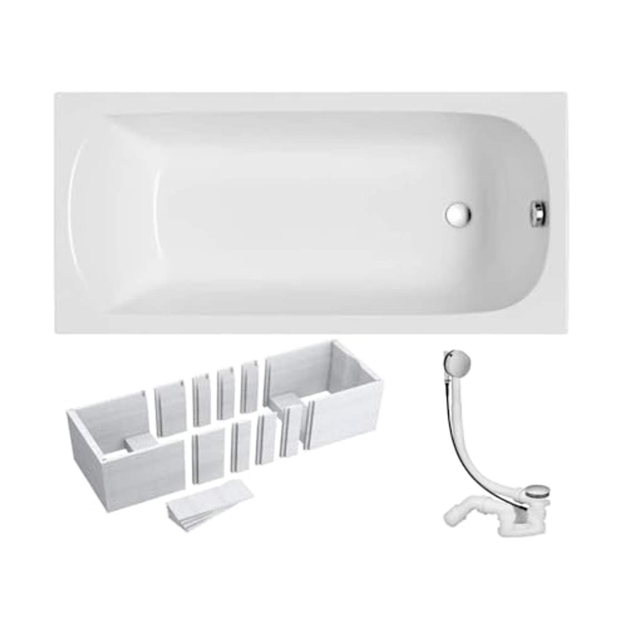 Über VBChome Badewanne 140x70 cm Acryl SET 3in1 Wannenträger Siphon Wanne