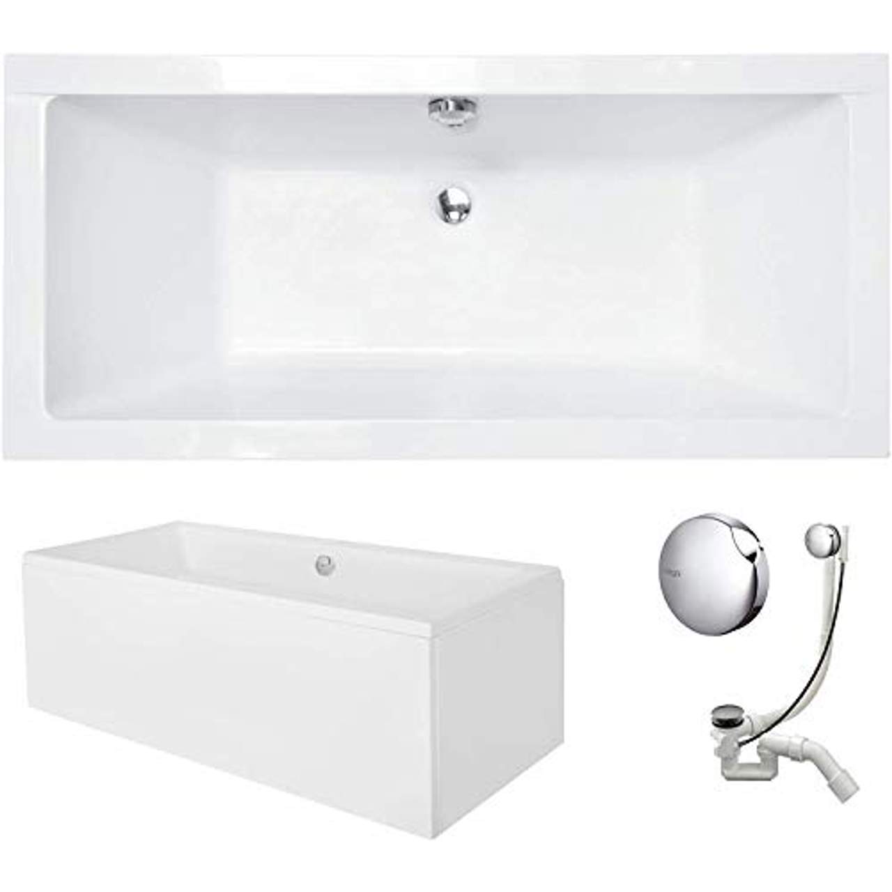 Über VBChome Badewanne 180 x 80 cm Acryl SET Schürze Siphon Acrylwanne Wanne Rechteck