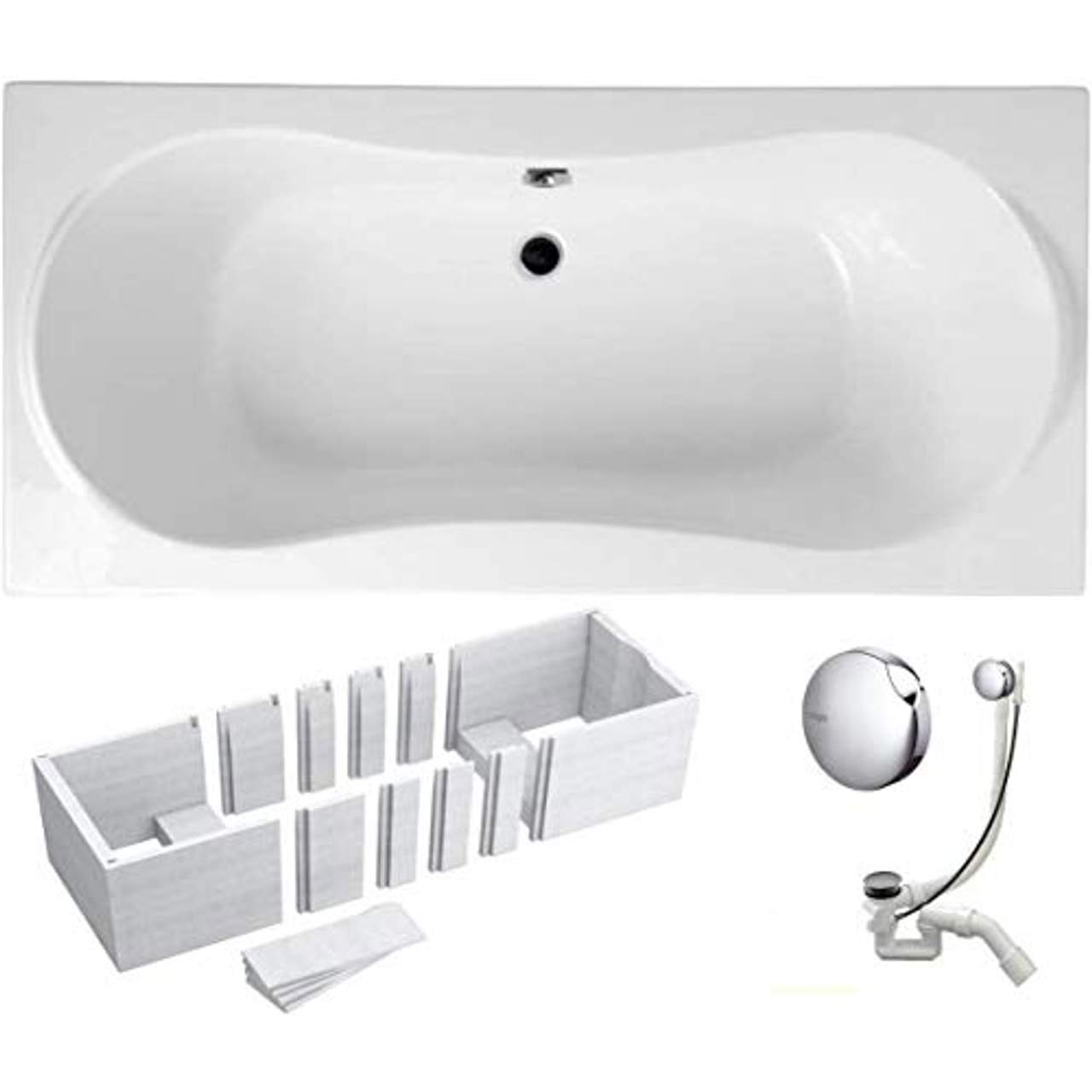 Über VBChome Badewanne 180x80 cm Acryl SET 3in1 Wannenträger Siphon Wanne