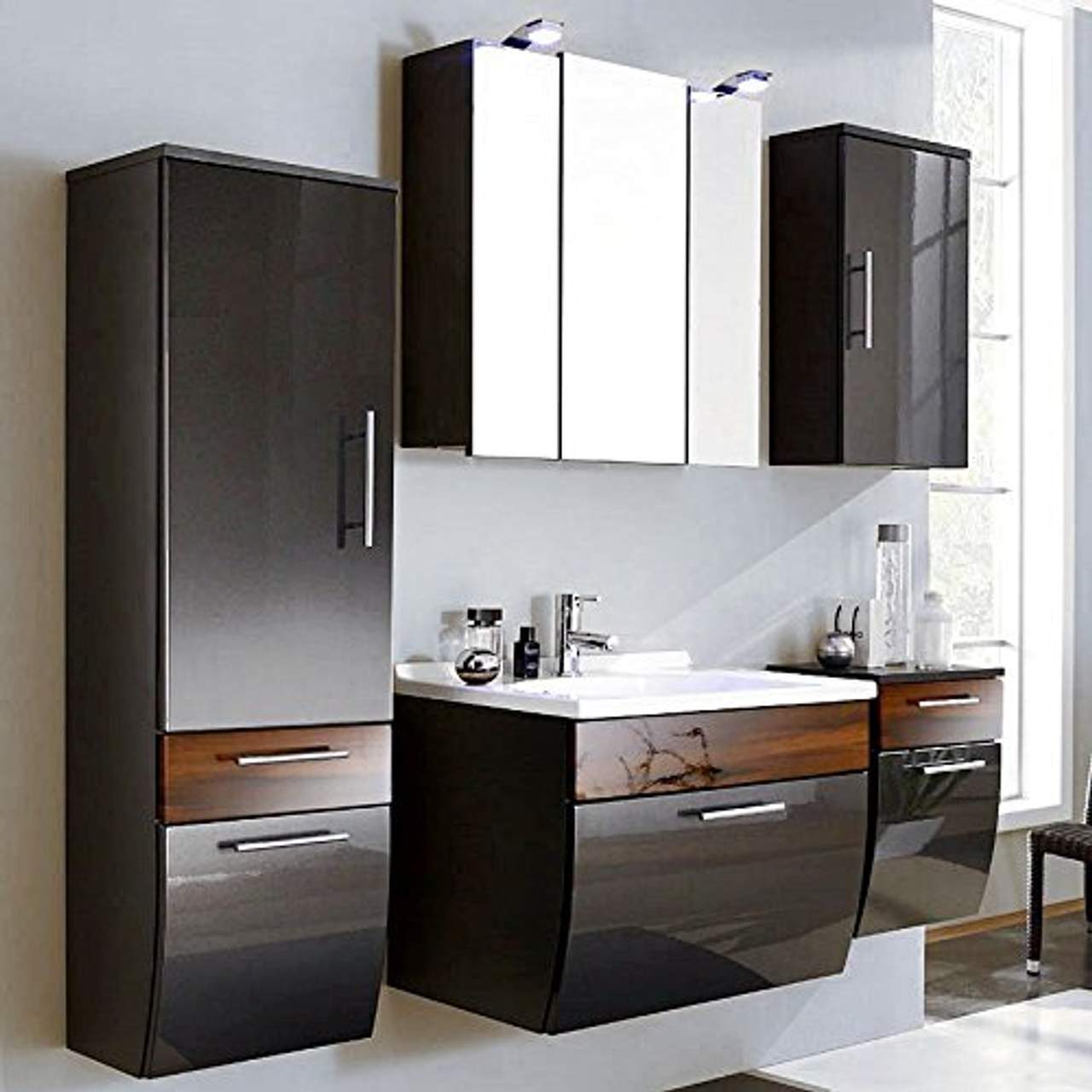 Preisvergleich: Günstigste Angebote für Badmöbel Set 5-teilig Hochglanz Anthrazit & Walnuss Badezimmer