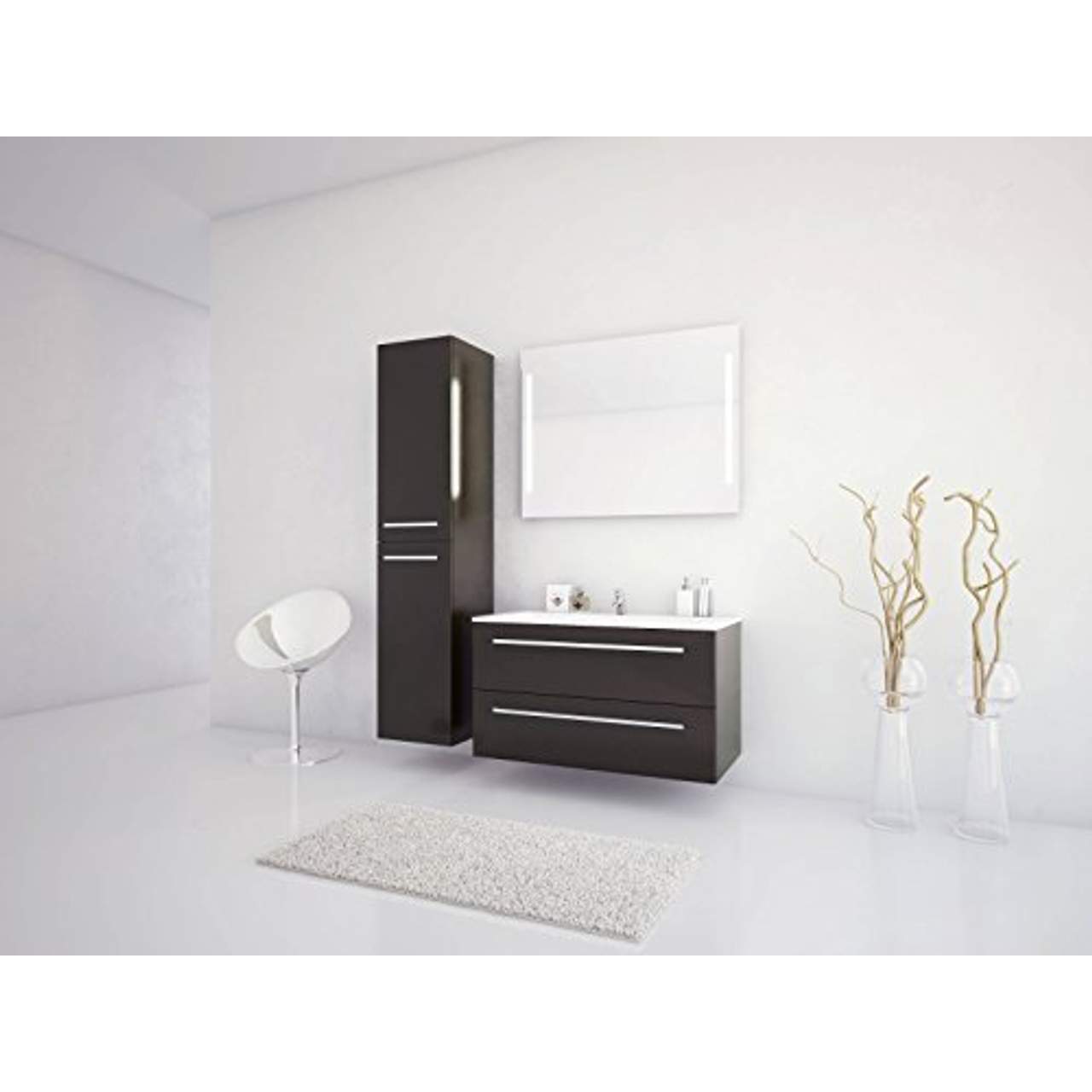 | Badmöbelset bestehend aus: | Waschtischunterschrank mit Waschbecken + Leuchtspiegel + Hochschrank |