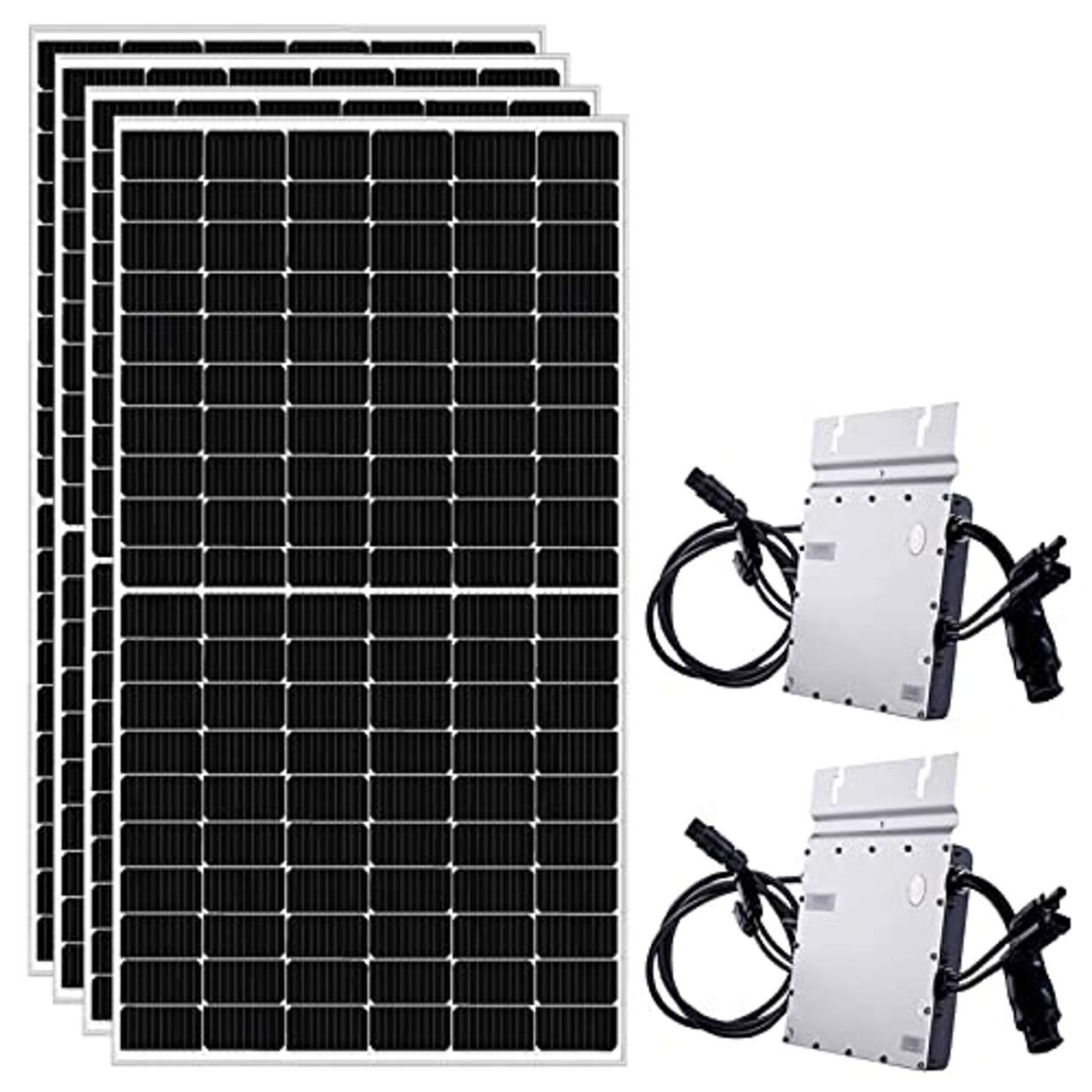 - Umfassendes Paket: Das komplette Paket kommt mit 4 x EPP 380 Watt HIEFF monokristalline Solarmodul Silber, 2 x Hoymiles Wechselrichter 600, 1 x 10 Meter AC-Anschlusskabel + Schuko-Stecker, und 1 x Erhebung SÜD für einfache Installation.