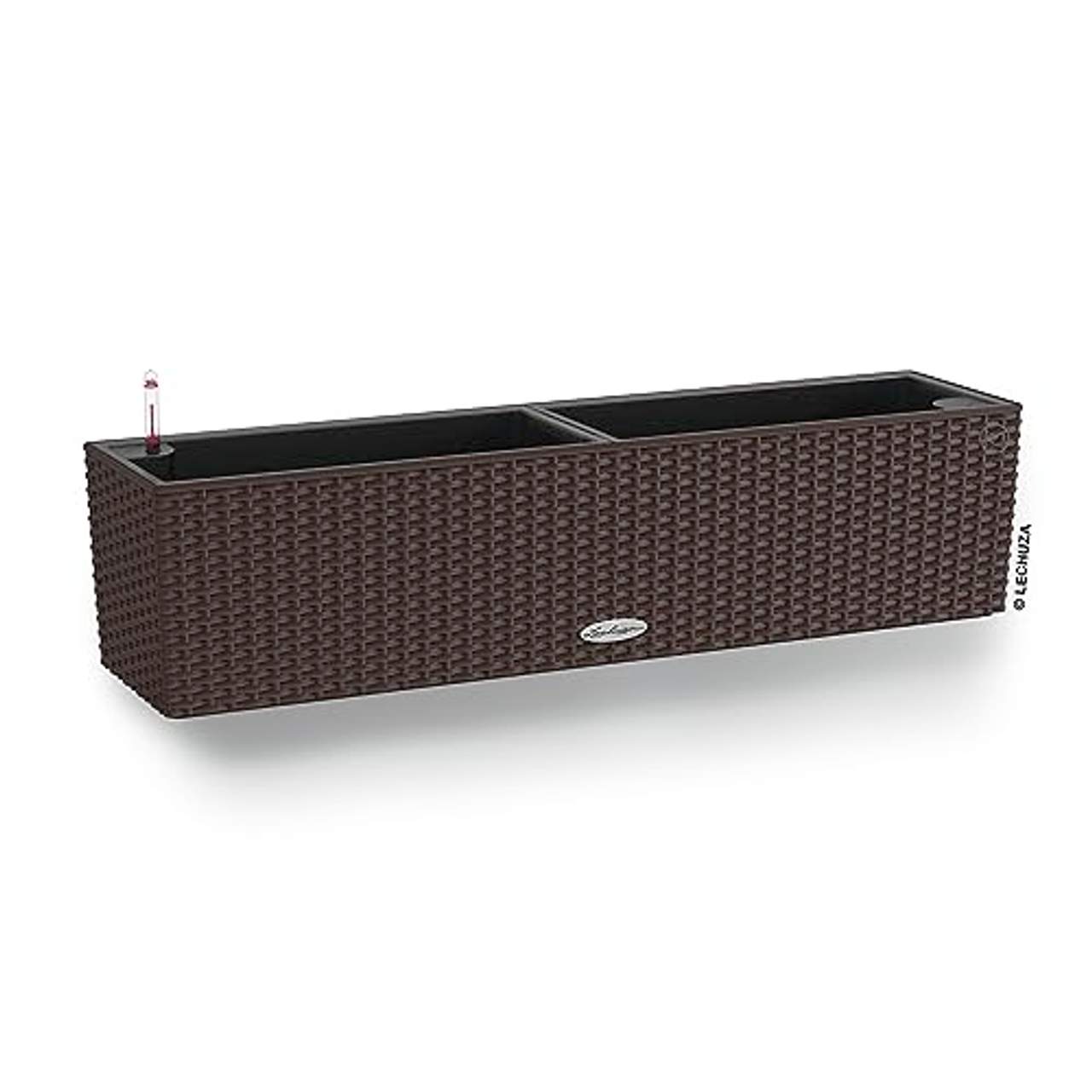 Lechuza "BALCONERA Cottage 80" PflanzgefäßDas Pflanzgefäß Balconera Cottage von Lechuza ist ein Balkonkasten, der mit angesagter Flechtoptik besticht und dennoch pflegeleicht ist. Dank des integrierten Erd-Bewässerungssystems sind Ihre Pflanzen auch an heißen Tagen optimal versorgt. Der Balconera Cottage zeichnet sich durch seinen witterungsbeständigen Kunststoff aus und ist daher leicht zu transportieren.Das optionale Zubehör Lechuza Balkonkastenhalterung (nicht im Lieferumfang enthalten) ermöglicht eine einfache Montage an Geländer oder Wand.