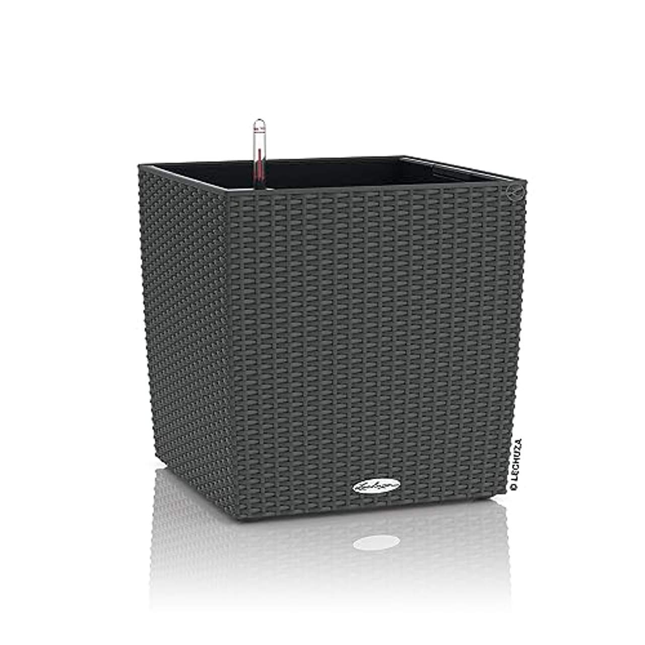 Lechuza "CUBE Cottage 40" PflanzgefäßHochwertiges Pflanzgefäß in bewährter Lechuza-Qualität - Made in Germany Der Cube Cottage 40 von Lechuza bietet insbesondere Pflanzen mit ausladenden Wurzeln den perfekten Platz. Ob im Wohnzimmer oder auf dem Balkon und der Terrasse - in diesem Pflanzgefäß kommen Ihre Lieblingspflanzen perfekt zur Geltung. Wie alle Pflanzgefäße aus dem Hause Lechuza ist auch dieser, in ansprechender, granitgrauer Geflechtoptik gearbeitete Pflanzwürfel überaus stabil und standfest. Das zuverlässige Lechuza Erd-Bewässerungs-System und der funktionale Pflanzeinsatz sind sorgen dafür, dass die Pflanzen mit der optimalen Menge an Gießwasser versorgt werden - für perfektes Wachstum und beste Pflanzengesundheit. Versenkbare, patentierte Tragegriffe machen die Handhabung von Pflanzgefäß und Pflanze kinderleicht. Zum Bepflanzen, Umdekorieren oder Überwintern wird der Pflanzeinsatz einfach aus dem Pflanzgefäß gehoben. Mit diesem All-in-One-Set erhalten Sie ein komplett ausgestattetes Paket, mit dem Sie sofort