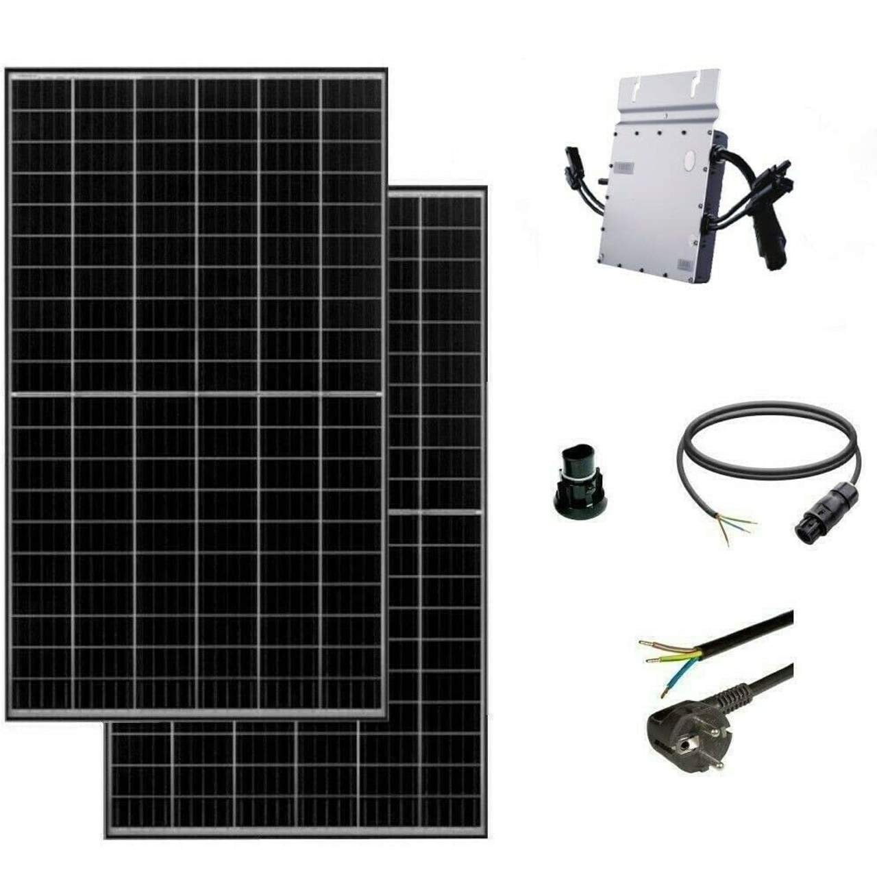 | Lieferumfang | 2x Lonig Solar LR4-60HIH-370M 370Watt, 1x Betterie Endkappe, 1x 5 Meter Anschlusskabel mit Stecker, 1x Microwechselricht …mehr |