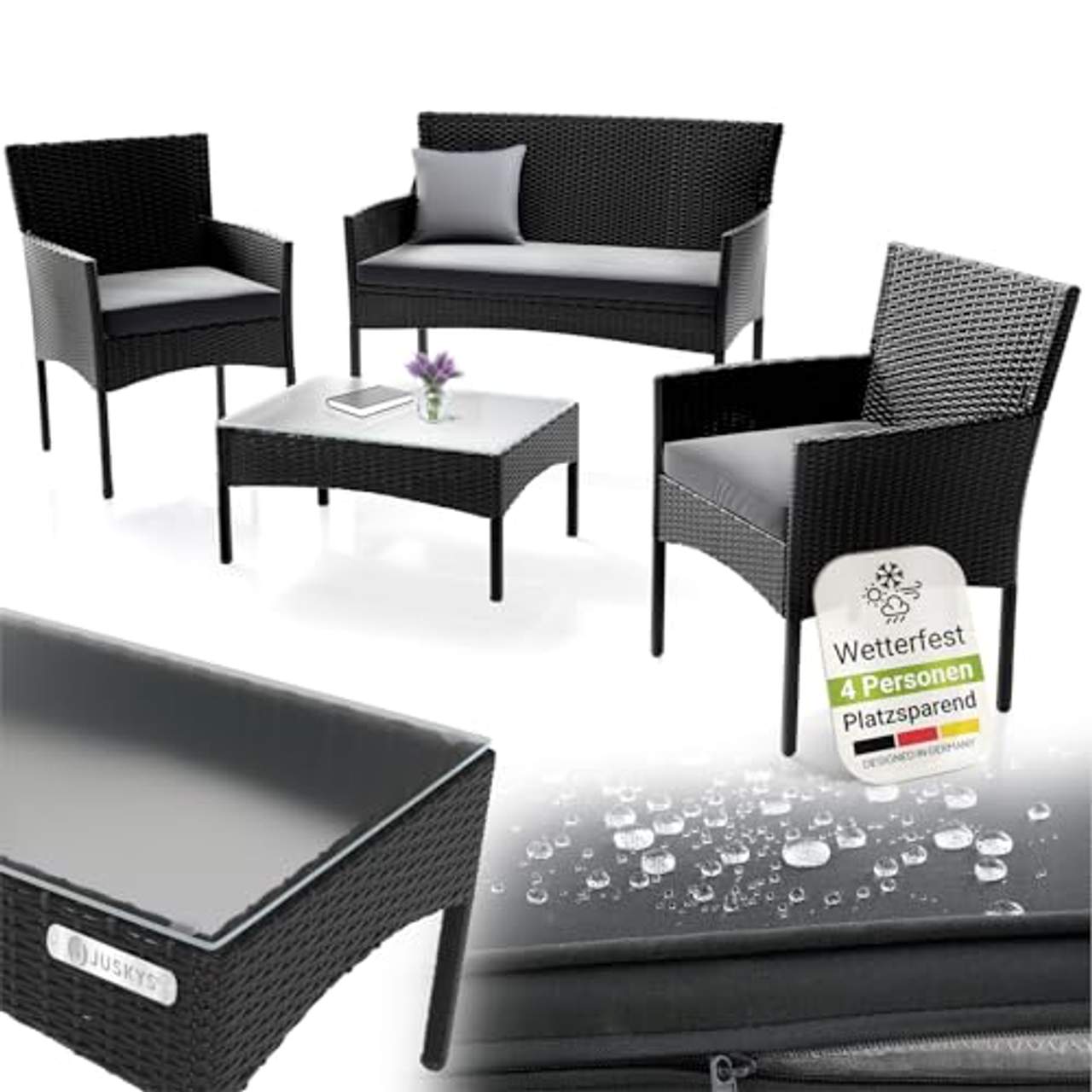 - Bequemes Sitzen: Die 5 cm dicken Kissen mit dunkelgrauen Bezügen aus 100% Polyester sorgen für ein bequemes Sitzerlebnis für bis zu 4 Personen.