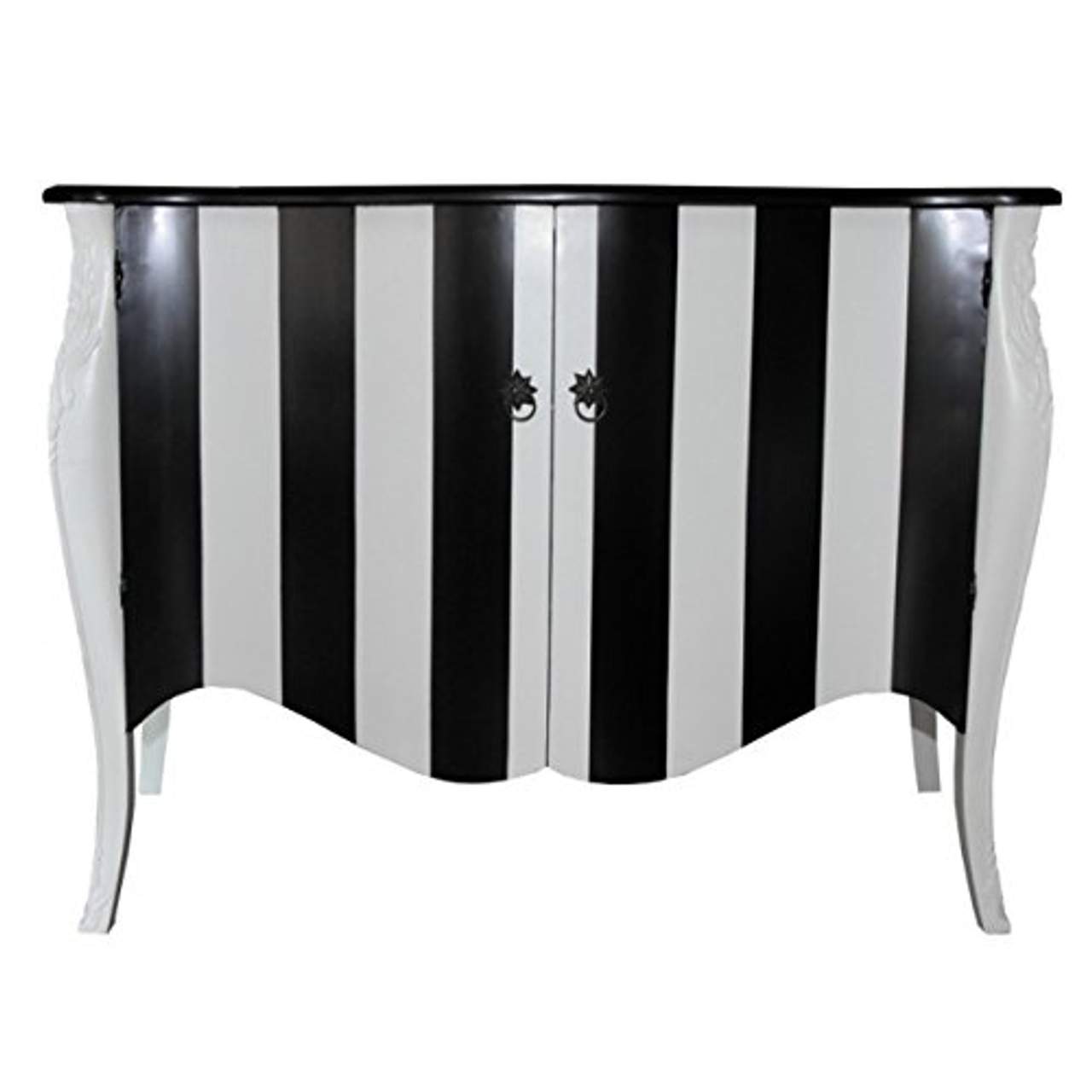 Casa Padrino Barock Kommode SchwarzHandgearbeitete Barockstil Kommode aus dem Hause Casa PadrinoHöhe ca 87 cmBreite ca 120 cmTiefe ca 60 cmMassivholzFarbe: Schwarz/Weiß Streifen