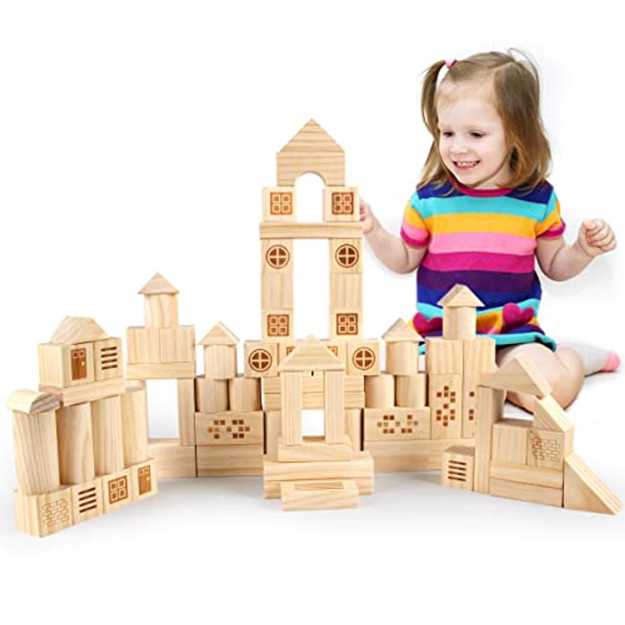 - Stundenlanger Lernspaß: Das Montessori-Lernspielzeug VATOS Wooden Building Blocks bietet stundenlangen Lernspaß für Kinder. Es enthält 75 rein natürliche, massive Kiefernholzblöcke, die sicher und unterhaltsam sind. Sie fördern frühe mathematische Konzepte und helfen Kindern, starke motorische Fähigkeiten, Hand-Augen-Koordination, kognitive Fähigkeiten, logisches Denken und Problemlösungsfähigkeiten zu entwickeln.