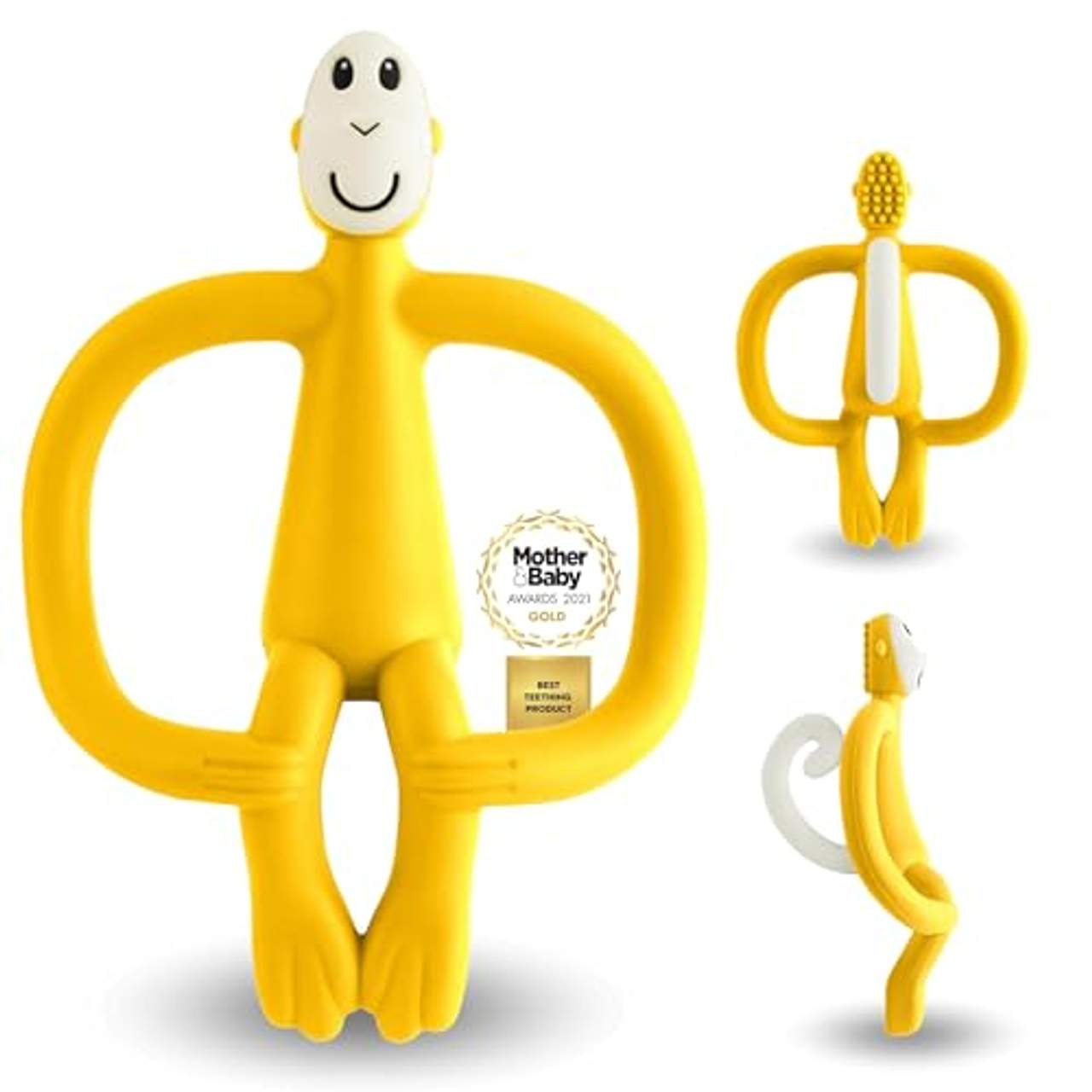 Matchstick Monkey Beißring Affe OriginalEntspannt durch die Zahnungsphase: Der lustige Affe von Matchstick Monkey unterstützt Dein Baby beim Zahnen und ermöglicht ein hygienisches Auftragen von Zahngelen. Mit seinem innovativen Design wirkt er direkt dort, wo es weh tut. Zahnungshilfe Monkey von Matchstick Monkey Größe:10,5 cm mit weichen Zahnungsnoppen kühlbar, sterilisierbar, spülmaschinengeeignet geeignet von 3 Monaten bis 3 Jahren aus Silikon (Lebensmittel-Qualität, BPA-frei) Die Zahnungshilfe unterstützt Dein Baby in der Zahnungsphase und hilft, Schmerzen zu lindern: Der Monkey ist so geformt, dass er sich von kleinen Händen gut greifen lässt. Gleichzeitig erreicht das durchdachte Design jede Stelle im Mundraum.Auf der Rückseite des Kopfs befinden sich weiche Zahnungsnoppen; hier lassen sich Zahngele zielsicher und hygienisch auftragen. Bei Bedarf kann die Zahnungshilfe auch im Kühlschrank gekühlt werden. Tolle Nebeneffekte: Mit dem fröhlichen Monkey trainiert Dein Baby auch seine motorischen Fähigkeiten.Außerdem bereitet der lustige Affe schon mal aufs Zähneputzen vor. Die Zahnungshilfe ist aus Silikon in Lebensmittel-Qualität gefertigt. Dieses ist BPA-frei und gesundheitlich unbedenklich. Damit sie immer hygienisch sauber ist, lässt sich die Zahnungshilfe sterilisieren oder in der Spülmaschine reinigen.
