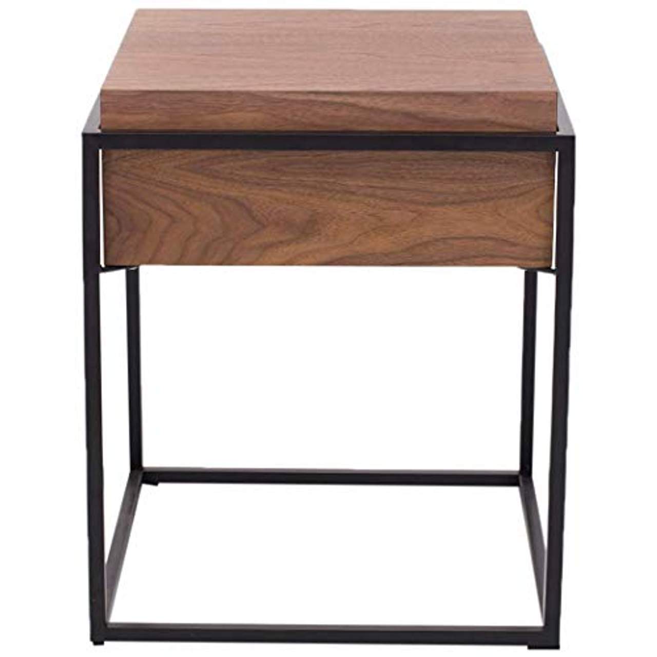 Der Beistelltisch Rivet Amazon Marke ist ein modernes, industrielles Design mit Walnussfurnier. Er hat die Maße von 43x43x52 cm und verfügt über eine praktische Schublade für zusätzlichen Stauraum. Die Montage ist erforderlich, sollte aber nicht allzu schwierig sein. Er ist Teil der Marke Rivet Amazon von Rivet.