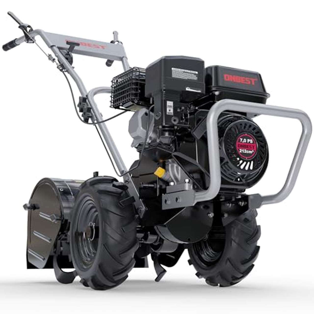 Die Onbest Gartenfräse wird von einem robusten Viertaktmotor angetrieben, der eine beeindruckende Leistung von 7,0 PS liefert. Diese Leistung ist für schwierige Bodenverhältnisse ausgelegt und sorgt dafür, dass du deinen Garten effektiv bearbeiten und die Bodenqualität insgesamt verbessern kannst.
