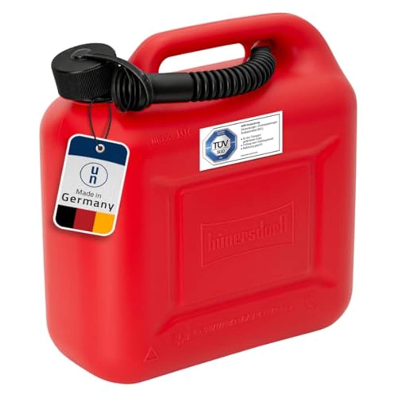 - UN-Zulassung: Das Produkt hat die UN-Zulassung 3H1/Y1.2/200/XX/A/PA-03/43395-huenw, was bedeutet, dass es alle erforderlichen Normen für den Transport von Benzin, Diesel und anderen gefährlichen Gütern erfüllt.