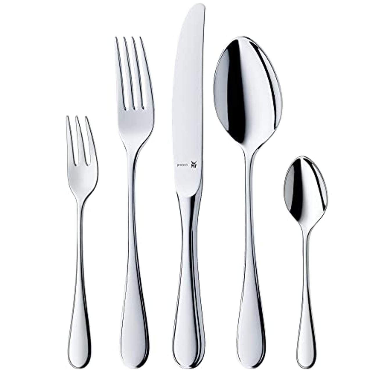 Das WMF Kent Besteckset 30-teilig besteht aus sechs Gabeln, Tafelmessern, Löffeln, Kuchengabeln und Tee-/Kaffeelöffeln und ist damit ein komplettes Set für sechs Personen.