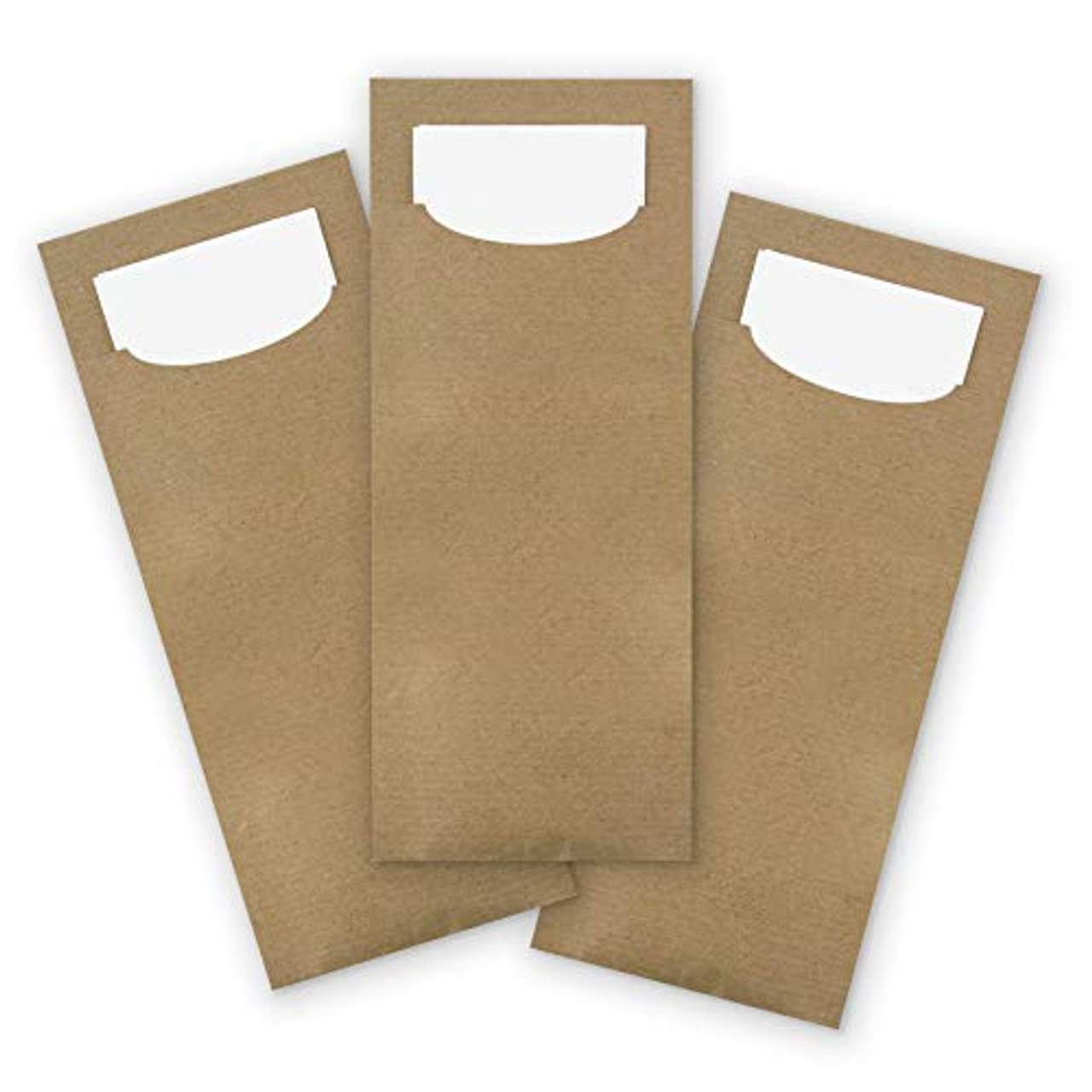 itenga Bestecktascheitenga Bestecktaschen / Pochetten Menge: 100 StückAußenabmessung Bestecktasche: Länge 20cm, Breite 8,2cmMaterial: Papier in Braun Bestecktaschen oder Pochetten sind die idealen Einwegprodukte, um Ihr Besteck ordentlich auf dem Tisch herzurichten. Oder als Basis zum Basteln von individuellen Bestecktaschen die themen- oder anlassbezogen eingesetzt werden können. Die Bestecktaschen / Pochetten sind mit einem extra Steckplatz für Besteck versehen.