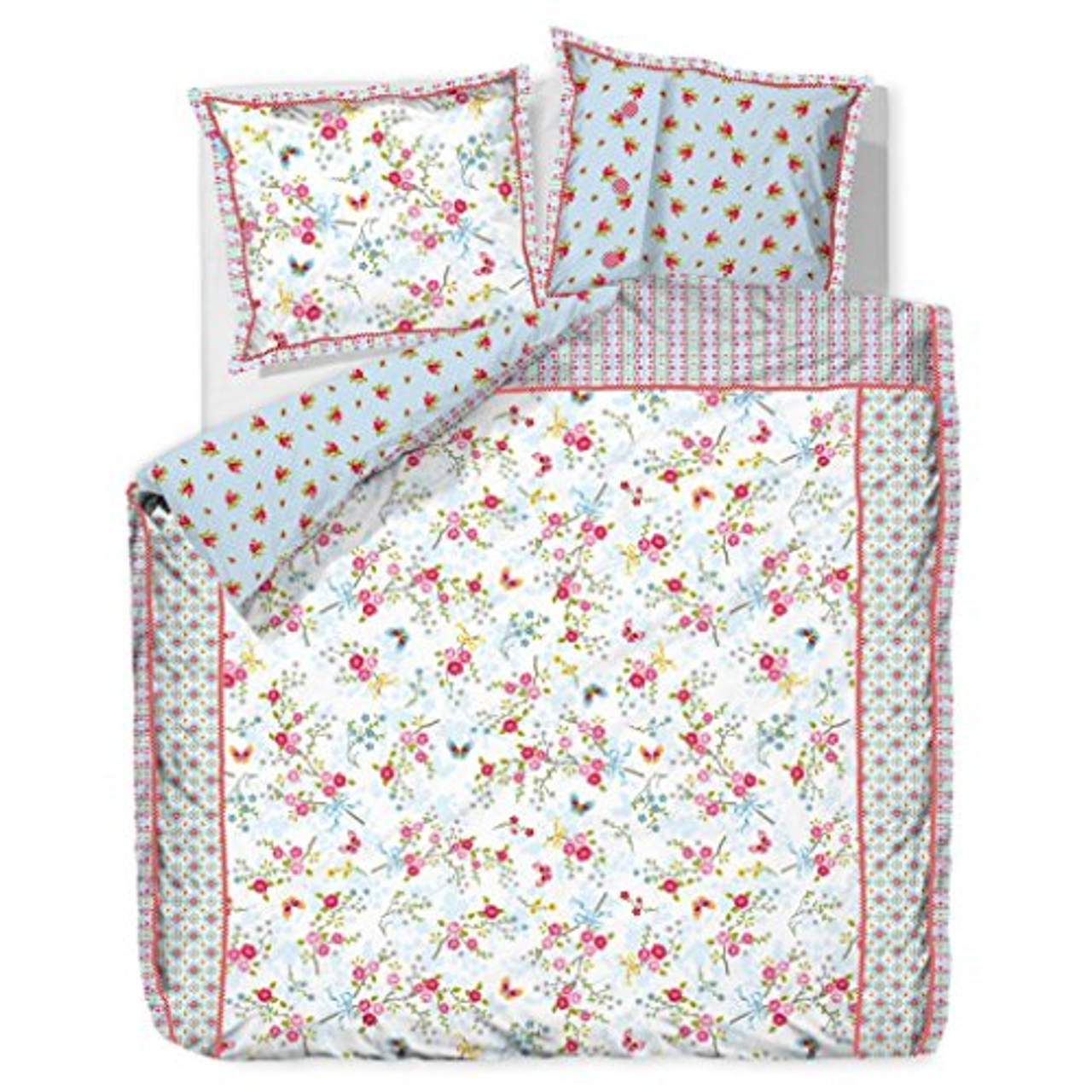 PiP Studio PIP Bettwäsche Chinese Blossom white 135x200 cmFarbenfrohe Pip Studio Bettwäsche (Wendebettwäsche) aus 100% Baumwolle (Perkal) mit verspielten, floralen Mustern auf weißem Untergrund auf der Vorderseite. Rückseite mit bunten Blumen auf einem hellblauen Untergrund. Stehsaum um das Kissen und seiltich am Bettbezug. Verschluss mit Knöpfen.