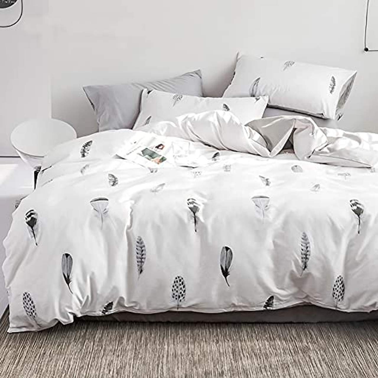 Über Michorinee Bettwäsche Federn 135x200 Weiß Grau Federn Motiv Wendebettwäsche