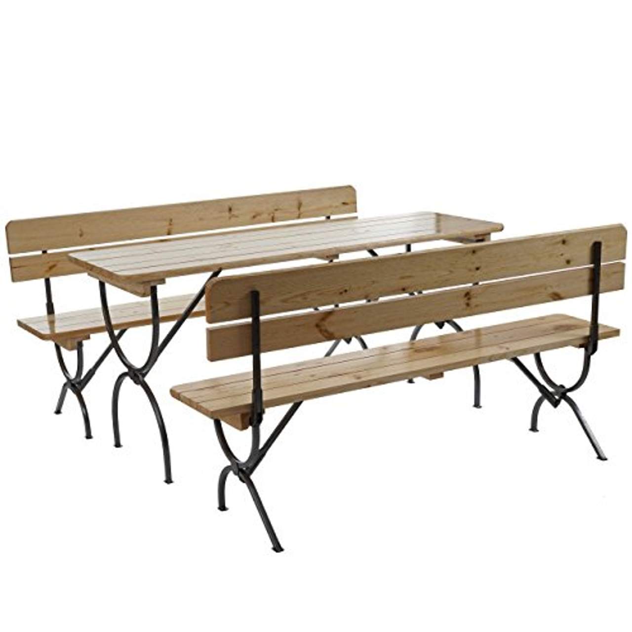 Mendler Bierzeltgarnitur Linz FestzeltgarniturGastronomie-Bierzeltgarnitur Linz, Festzeltgarnitur mit Lehne, lackiert - Markeninhaber TÜV-Süd QM ISO9001 zertifiziert mit Nr. 12 100 59626 TMS für Qualitäts-Management in Deutschland - Biertischgarnitur - Kiefernholz - Dicke Metallstreben - Stabile Konstruktion - Kompakt zusammenklappbar - Mit Stapelleisten - UV-Lackierung, 2x oben und 1x unten lackiert - Dicke des Holzes: 2,8 cm - Breite der Metallstreben: 3 cm - Aus europäischen Hölzern Maße (ca.): Tisch: Höhe: 81 cm Breite: 60 cm Länge: 180 cm Dicke des Holzes: 2,8 cm Breite der Metallstreben: 3 cm zusammengeklappt: 11x60x180 cm Bank: Höhe: 89,5 cm Sitzhöhe: 48 cm Tiefe: 40 cm Sitztiefe: 34 cm Länge: 180 cm Dicke des Holzes: 2,8 cm Breite der Metallstreben: 3 cm zusammengeklappt: 10x47x180 cm Um für Sie einen leichteren Transport in Ihre Wohnung zu ermöglichen, wird Ihr Artikel in mehreren einzelnen Paketen versendet. Dadurch können Sie die Artikel auch über eine Wendeltreppe in sonst nicht zugängliche Wohnungsbereiche bringen oder einen Aufzug benutzen.Bitte entschuldigen Sie, das diese trotz zeitgleichem Versand nicht immer am gleichen Tag bei Ihnen ankommen. Was sollen wir Ihnen zu den Produkten der Linz-Serie erzählen, das Sie nicht schon aus Max Mustermanns Standard-Artikelbeschreibung, nach DIN-Norm 1a kennen?Wow, was für tolle Qualität und dazu noch sooo praktisch und unglaublich schön zugleich. Jaja… Spaß beiseite, bei diesen Artikeln handelt es sich um gute Produkte, die unsere Erwartungen nicht nur erfüllen, sondern weit übertroffen haben.Gefertigt in Europa, aus europäischen Hölzern, erweisen sich unsere Linz-Produkte als treuer Begleiter. Warum Begleiter? Schön, dass Sie fragen! Die Linz-Serie ist durch wenige Handgriffe zusammenklappbar und somit tatsächlich 100%ig transportabel und äußerst platzsparend zu lagern.Achtung: Die Biertischgarnitur ist für den überdachten Bereich konstruiert. Bei einer dauerhaften Nutzung bei Wind und Wetter im Außenbereich, wird der Lack in Mitleidenschaft gezogen. Das beeinträchtigt die Optik - nicht jedoch Funktion oder Sicherheit. Diese Beeinträchtigung haben alle uns bekannten lackierten Holzmöbel. Tisch: Bank: Weitere Hinweise Wählbar zwischen 150cm oder 180cm Länge Garnitur in Brauereiqualität Kiefernholz Dicke Metallstreben Mit Stapelleisten