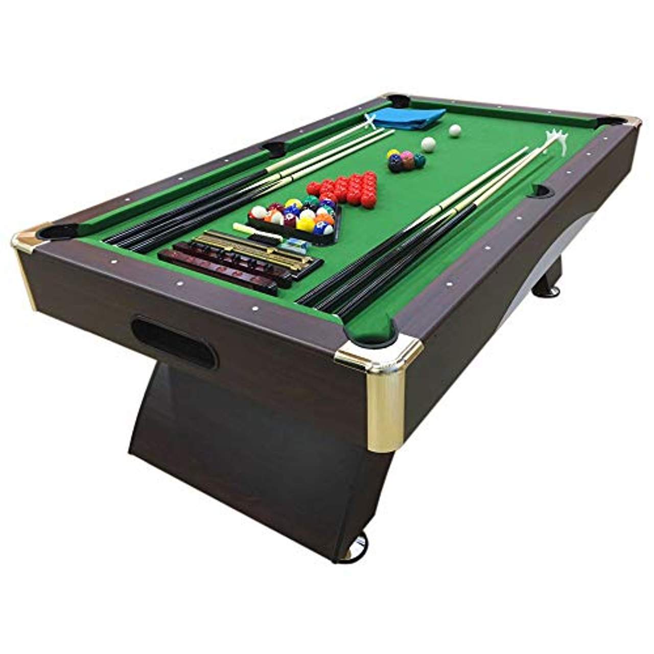 - Vielfältiges Zubehör: Dieses Produkt wird mit umfangreichem Zubehör geliefert, darunter 15 nummerierte Bälle mit weißem Ball, 15 rote Bälle mit weißem Ball, 6 verschiedenfarbige Bälle, 6 Queues (4 Karambolage- und 2 Holzstöcke mit Brücke), Anzeigetafel/Bürste für die Reinigung des Tuchs, 2 Kreiden und Füße mit Höhenverstellung für die horizontale Position des Tisches.