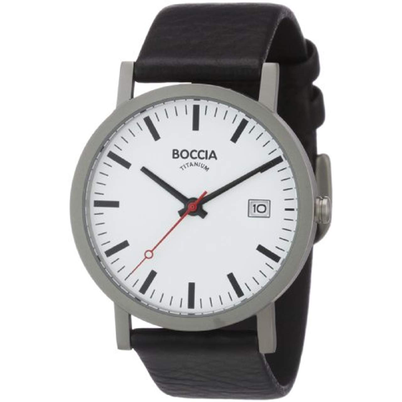 - Stil: Die Boccia Titanium Watch hat mit ihrem weißen Zifferblatt, dem silbernen Gehäuse und dem schwarzen Kalbslederarmband einen modernen Look. Sie ist ein echter Hingucker!