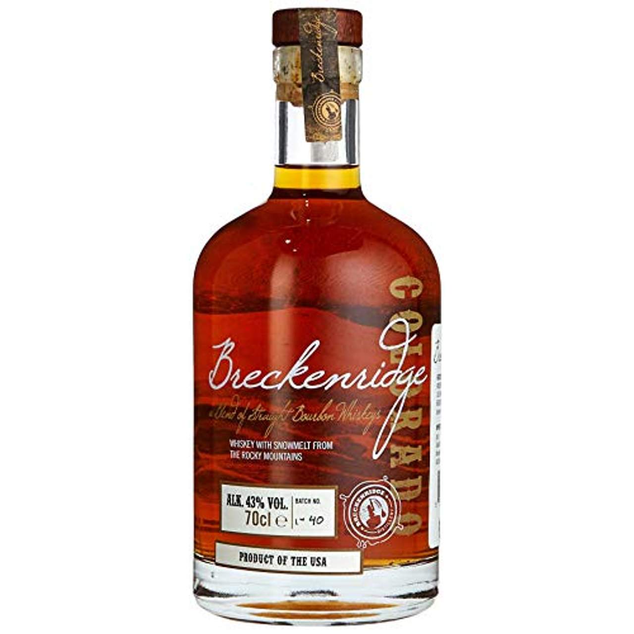 Breckenridge Bourbon Whiskey ist eine 70-cl-Flasche mit einem Alkoholgehalt von 43 % vol. Er hat eine dunkle Honig- oder Bernsteinfarbe und warme, intensive Aromen von unreifen Bananen, braunem Zucker, weißem Pfeffer und geröstetem Sesam. Der Whiskey hat eine leichte Textur mit einem langen süßen Eichen- und Vanilleabgang. Er wird aus einer Maische mit hohem Roggenanteil destilliert und 4 bis 8 Jahre lang in amerikanischen Bourbonfässern gereift. Dieser Whiskey wurde mit 14 Goldmedaillen ausgezeichnet und wird in der Breckenridge Distillery hergestellt, die sich in der höchsten Lage aller Brennereien der Welt befindet.