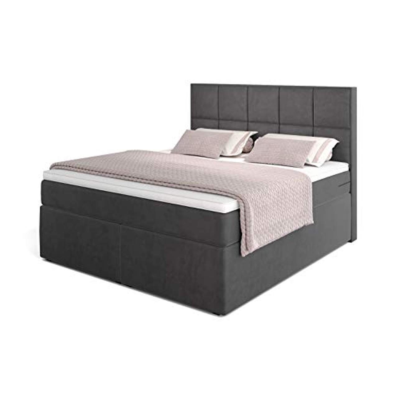 - Luxuriöser Schlaf: Das Betten Jumbo Dream Boxspringbett 180x200 cm Grau-Anthrazit bietet ein luxuriöses Schlaferlebnis, ähnlich dem eines 5-Sterne-Hotels. Es verfügt über eine Taschenfederkernmatratze mit 220 Federn pro m² für optimalen Liegekomfort sowie einen Visco-Schaum-Topper zur Körperanpassung.