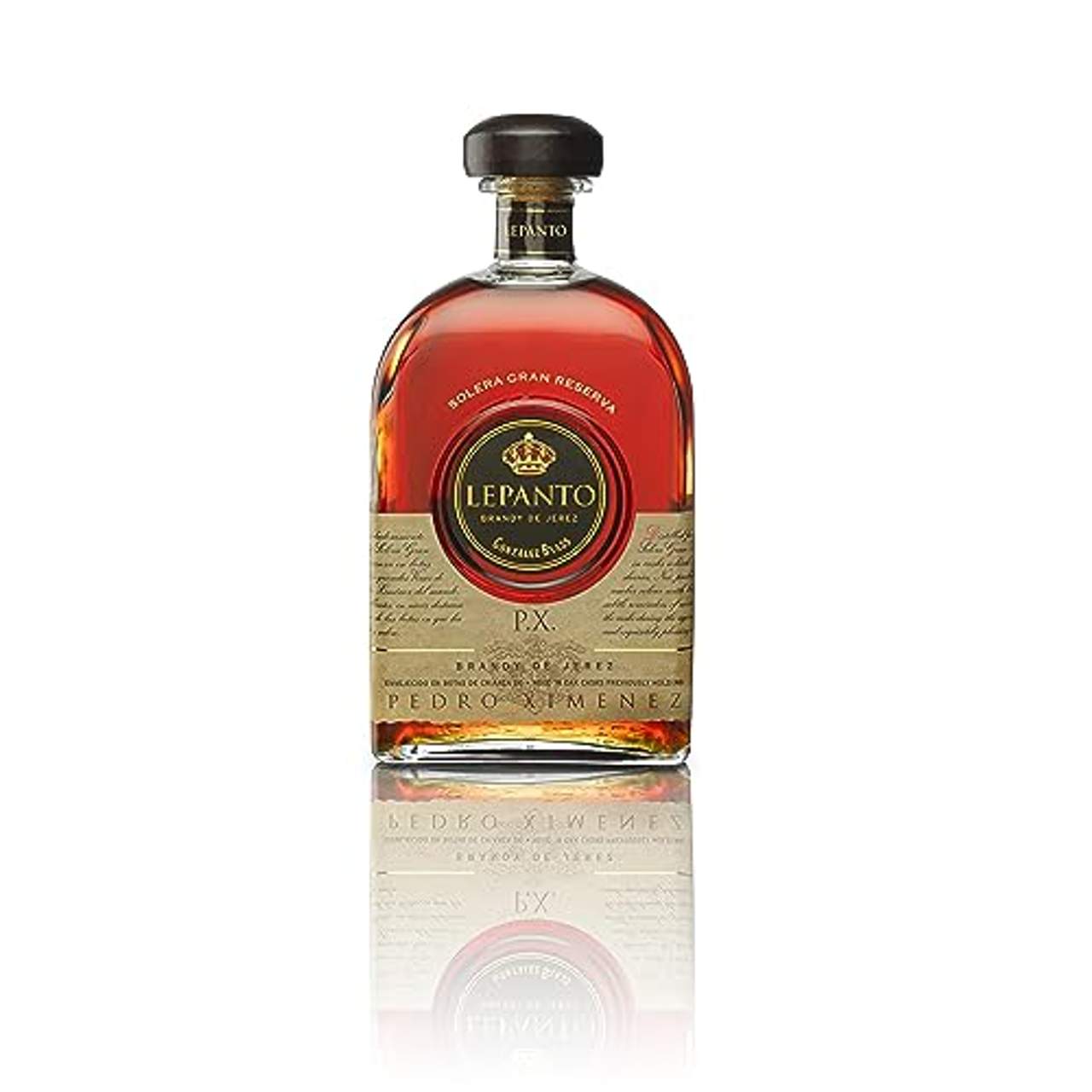 - Hervorragende Qualität: Lepanto Solera Gran Reserva Brandy de Jerez P.X. ist von außergewöhnlicher Qualität, mit einem Aroma von Datteln, Rosinen, Feigen und würziger Eiche. Am Gaumen ist er weich und mild, mit viel weichem Reichtum und einer feinen Süße.