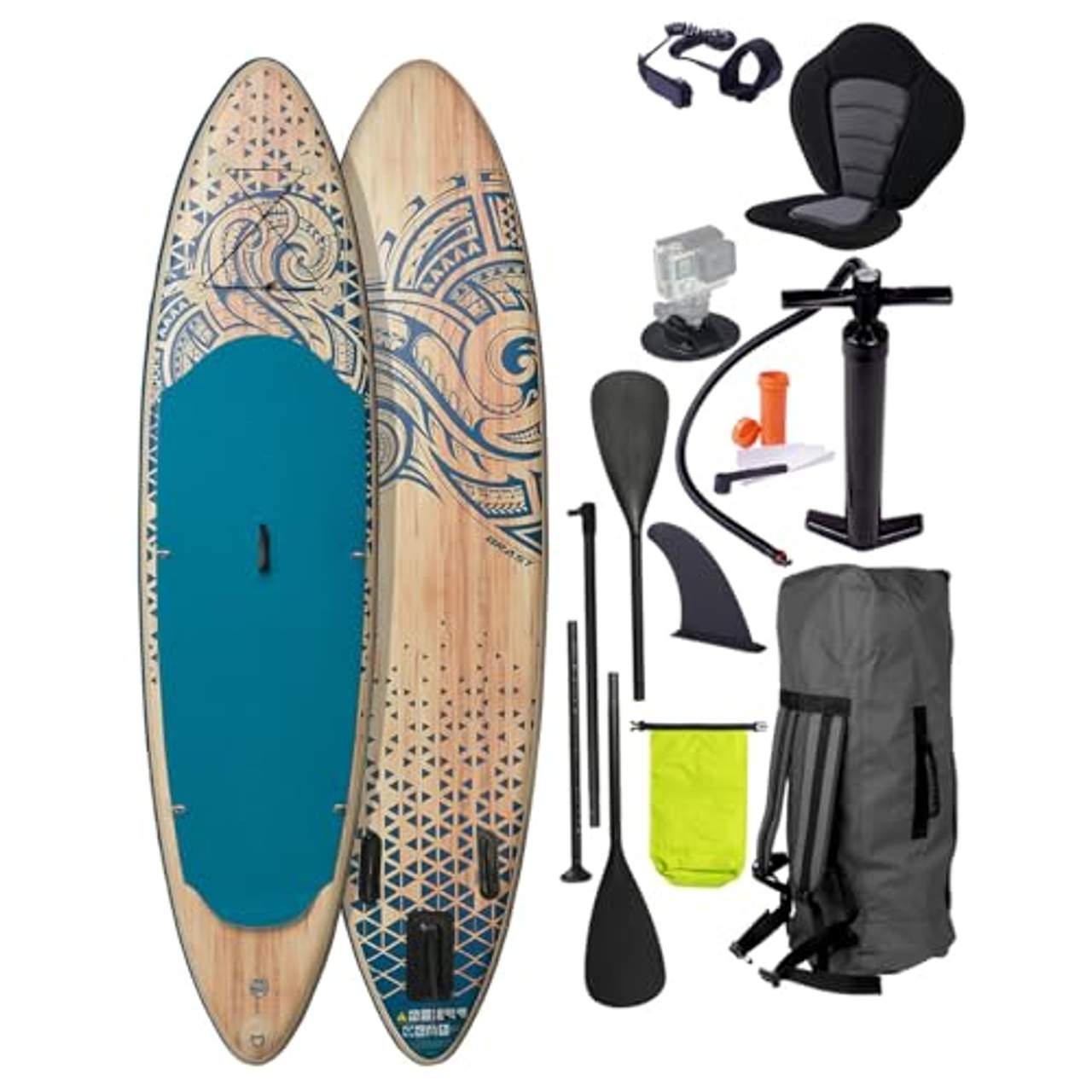 - Modernste Technologie: Die hochmoderne Technologie des BRAST SUP Boards Tribal Ocean Sixties & Turtle sorgt für außergewöhnliche Steifigkeit, Handling und Richtungsstabilität. Das bedeutet, dass Anfänger und Fortgeschrittene ein Board erleben, das reaktionsschnell und leicht zu kontrollieren ist und ihr Paddelerlebnis insgesamt verbessert. Die leistungsstarke Drop Stitch-Technologie, die bei der Konstruktion des Boards verwendet wurde, sorgt für eine zuverlässige und stabile Plattform für verschiedene Wasseraktivitäten und gibt den Nutzern Vertrauen in die Leistung und Haltbarkeit des Boards.