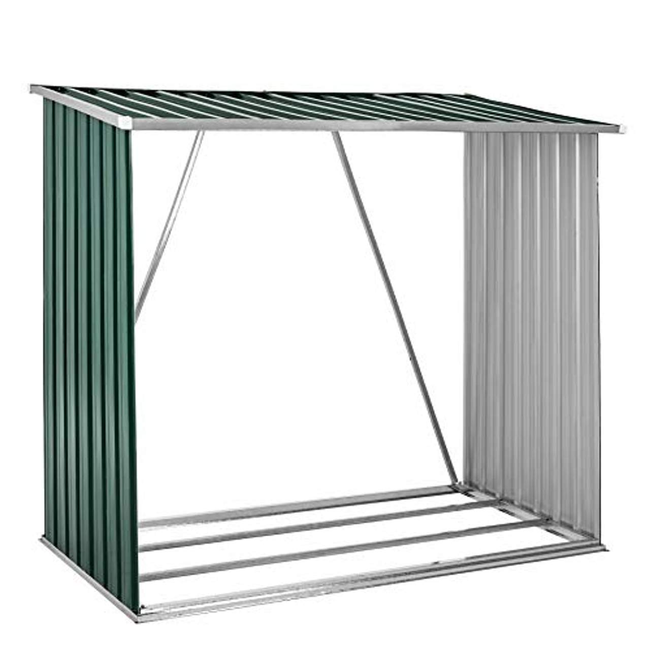 ESTEXO Brennholzunterstand BrennholzDieser Holzunterstand ist ideal zur Aufbewahrung von Brennholz und schützt es vor Regen und Schnee. Im Freien aufgestellt sorgen gleichzeitig Sonne und Wind dafür, dass das Kaminholz genügend Feuchtigkeit verliert und trocknen kann. Das Metall Brennholzregal aus verzinkten Trapezblechen wird durch die Profilversteifungen zusätzlich stabilisiert.Es hält Witterungseinflüssen Stand und ist somit sehr langlebig. Technische Daten: Breite: ca. 164 cm Tiefe: ca. 83 cm Tiefe (Boden): ca. 70 cm Firsthöhe: ca. 154 cm Traufhöhe: ca. 144 cm Material: Metall, verzinkt Farbe: Grün RAL 6005 oder Anthrazit RAL 7016