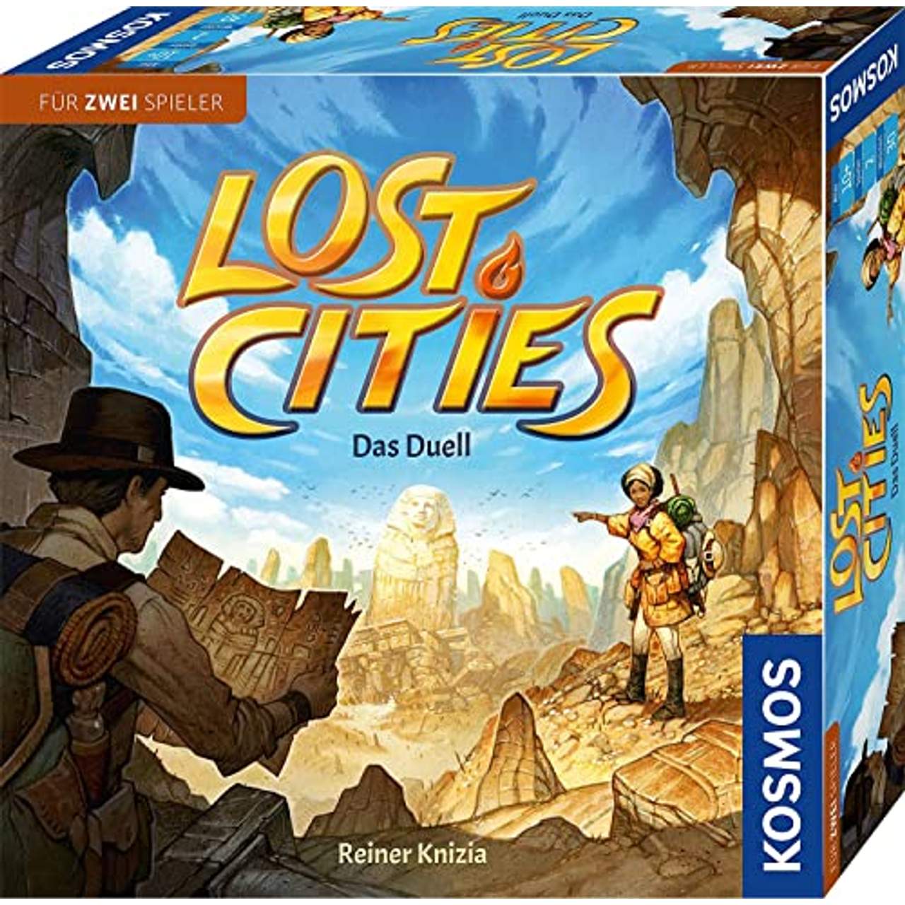 Kosmos Spiele 694135 Lost Cities„Lost Cities“ als Spiel für Zwei - bereits jetzt ein großer Verkaufserfolg in den USA.Die Spieler legen mit ihren Karten Expeditionsrouten, die sie in entlegene Winkel der Erde führen: Himalaya, Regenwald, Wüste, Vulkangebiet und unter Wasser. Ziel ist es, die Routen so zu legen, dass sie die Spieler zu möglichst viel Ruhm verhelfen.Wer besonders wagemutig ist, kann zusätzlich auf den Erfolg seiner Expedition wetten. Aber Vorsicht: Banditen und das gegnerische Team sorgen für überraschende Wendungen. Wer am Ende den meisten Ruhm erlangt, gewinnt.Für 2 Spieler ab 10 Jahren. Spieldauer: ca. 30 Minuten.