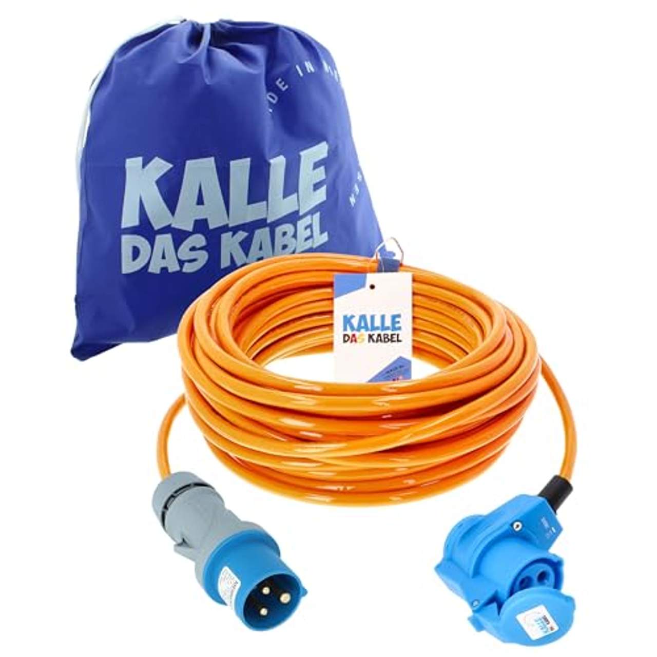 CEE Verlängerung KALLE Blue Signal 2,5mm² Winkel Industrie Bau BootCEE Verlängerung KALLE Blue in oranger Signalfarbe Für härteste mechanische und chemische Beanspruchung im Industrie- und Baustelleneinsatz und im Campingbereich mit sehr hoher Lebensdauer aufgrund der Abriebfestigkeit und Beständigkeit. Auch für extreme Bedingungen geeignet. Dieses Kalle das Kabel weist folgende technische Daten auf:• Polyurethan H07BQ-F 3G 2,5mm² in orange • CEE Stecker und Winkelkupplung mit rückseitiger Schukosteckdose, 230 V, 16A • seewasserbeständig • extreme Beständigkeit gegen mechanische Einwirkungen • fremdkörper- und spritzwassergeschützt IP 44 • für die dauerhafte Verwendung im Freien geeignet • Temperaturbereich -40 bis +90 C° • hochflexibel im gesamten Temperaturbereich • gefertigt nach DIN EN 60529 • ab 20 Meter im praktischem Kalle Bag • beständig gegen Öle und Fette • 15 Jahre Garantie* Die Ummantelung aus Polyurethan H07BQ-F ist eine nach VDE harmonisierte Leitung und übertrifft die Anforderungen an die Gummileitung H07RN-F. Ein Vergleich gibt es
