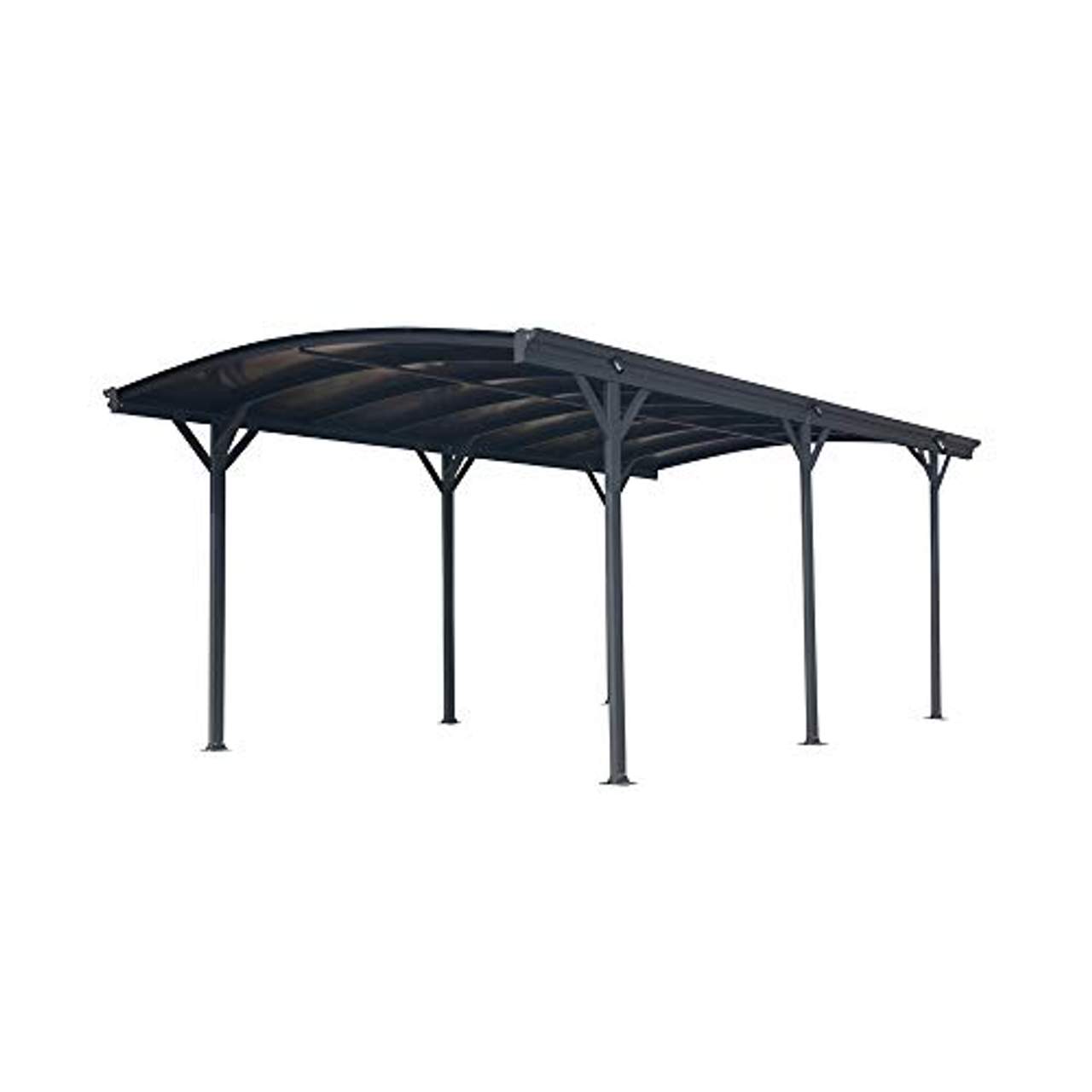 Westmann Aluminium Rundbogen Carport Bergen anthrazitPraktischer, stabiler und schöner Rundbogen-Carport. Der Carport besteht aus 6 mm Doppelstegplatten und einem pulverbeschichtetem Aluminiumrahmen in anthrazit (RAL 7016).Das Dach aus Doppelstegplatten hält Schneelasten von bis zu 100 kg/m² stand, ist UV-beständig und sorgt für einen hohen Lichteinfall. Ihr Fahrzeug wird vor Wettereinflüssen wie Regen und Schnee geschützt. Durch die mitgelieferte Regenrinne wird das Regenwasser optimal weitergeleitet.Der Carport ist flexibel einsetzbar und kann auch als Pavillon genutzt werden.Um einen einfachen Zusammenbau zu gewährleisten sind 2 Personen erforderlich. Ein Schrauben-Kit zur Befestigung am Boden wird mitgeliefert.Wartungs- und korrosionsfrei - Nie wieder streichen, kein Rost, kein Verwittern!Besonderheiten:Langlebige Aluminiumkonstruktion